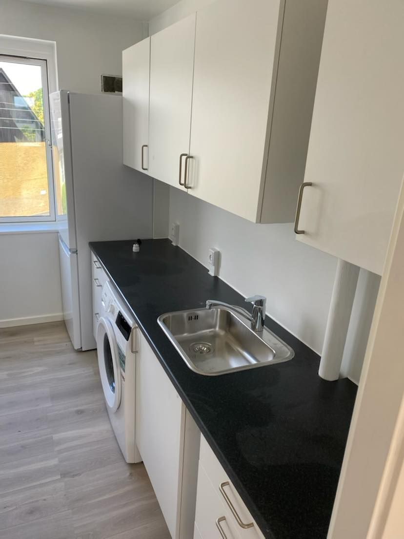 Dette attraktive lejemål er beliggende ovenpå Rema 1000, hvilket gør hverdagen både bekvem og praktisk med dagligvareindkøb lige ved hånden. I ejendommen er der adgang til en lækker tagterrasse med rig mulighed for at nyde solen, slappe af med en kop kaffe eller mødes til hyggeligt samvær med ejendommens andre beboer. Lejligheden er en stor et værelses og byder på en moderne indretning med gode materialer og en lys atmosfære, der skaber en indbydende og hjemlig stemning. Lejligheden er udstyret med alle de nødvendige hvidevarer til en komfortabel hverdag. Køkkenet indeholder køle-/fryseskab, keramiske kogeplader samt ovn. Lejer her desuden mulighed for at medbringe egen vaskesøjle. Bemærk: Billederne stammer fra et andet lejemål i ejendommen, men er vist for at vise materialer, lysforhold ol. *Plantegning og billeder er vejledende. Der vil I forbindelse med anmodning om leje af boligen bliver bedt om udskift af RKI.