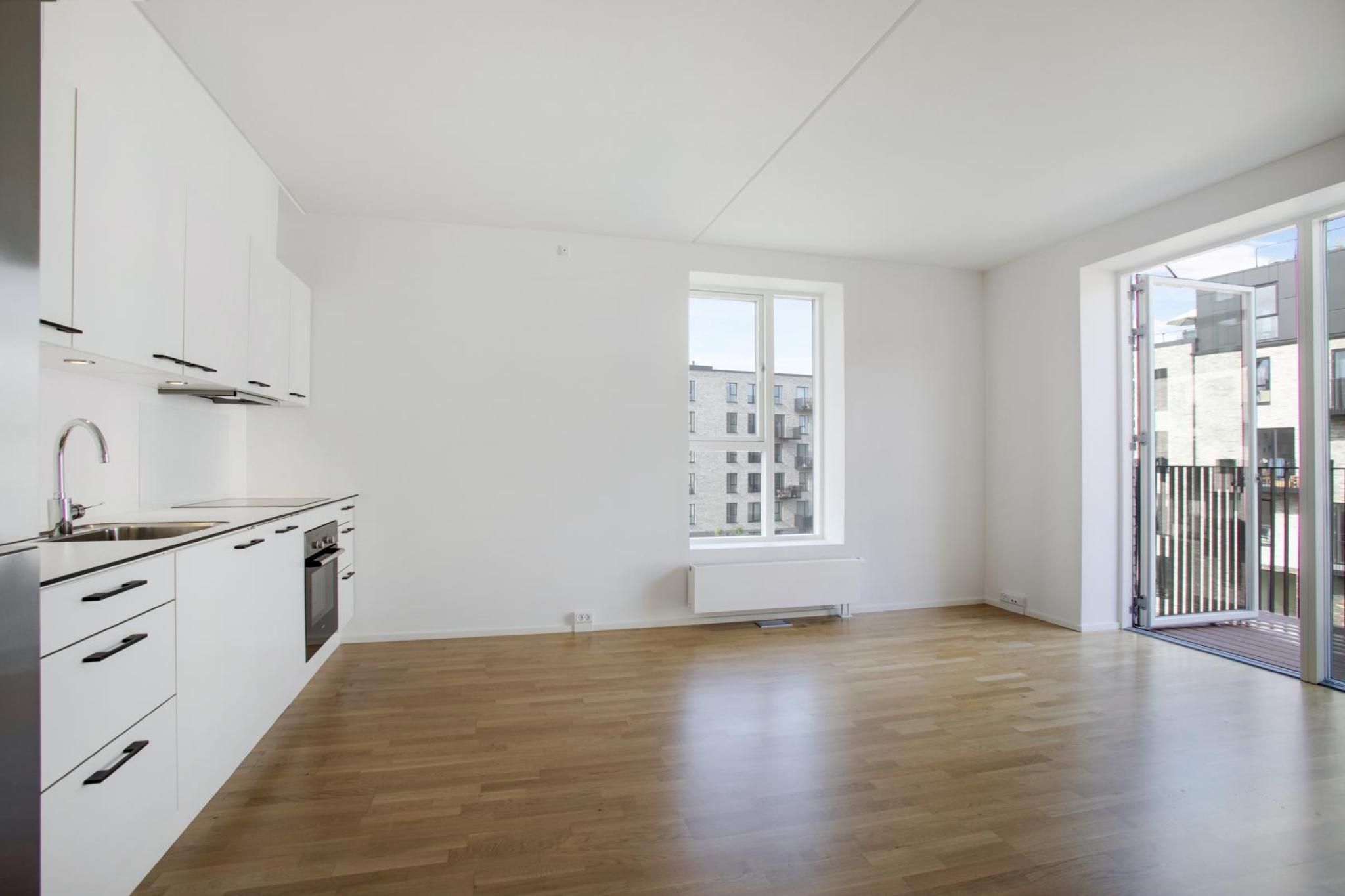 Robert Jacobsens Vej 73 i den sydligste spids af Ørestad byderpå 87 lejeboliger. Boligerne har forskellige størrelser fra 64 m² og helt op til 159 m² for den største og er på henholdsvis 2, 3 og 4 værelser, så der er plads til både singler, par, studerende og børnefamilier, der drømmer om at bo tæt på både by og åbne vidder. Hver enkelt bolig er optimeret til dens unikke placering i bygningen, så du får så meget lys som muligt og ikke mindst kan nyde den smukke udsigt over Kalvebod Fælles uendelige natur. De fleste boliger har dermed et fantastisk lysindfald fra begge sider. Indretningen er lys og indbydende med trægulve, hvide vægge og et funktionelt køkken og bad, og hver bolig har adgang til sit eget private uderum – enten i form af en lille have i stueetagen eller altaner. Øverst ligger tre eksklusive penthouselejligheder, der byder på sine egne store tagterrasser. Robert Jacobsens Vej 73 ligger attraktivt placeret i den sydligste del af Ørestad, der i øjeblikket gennemgår en rivende udvikling med nye boliger, indbyggere og spændende ting på tegnebrættet. Samtidig ligger bygningen direkte ud til Kunstpladsen med den markante skulptur 'Den store Udveksler', og du skal blot krydse en gangbro, så rammer du Kalvebod Fælleds skønne natur, som indbyder til både gå-, løbe- og cykelture i de smukke omgivelser. Her finder du også Naturcenter Amager, hvor du kan komme helt tæt på rådyr, gæs, køer og får. Aconto er fastsat ud fra forrige lejers forbrug. Der tages forbehold for fejl og evt. lejereguleringer. Der vil blive indhentet oplysninger hos RKI, og er man registeret hos RKI, vil man ikke kunne leje boligen.