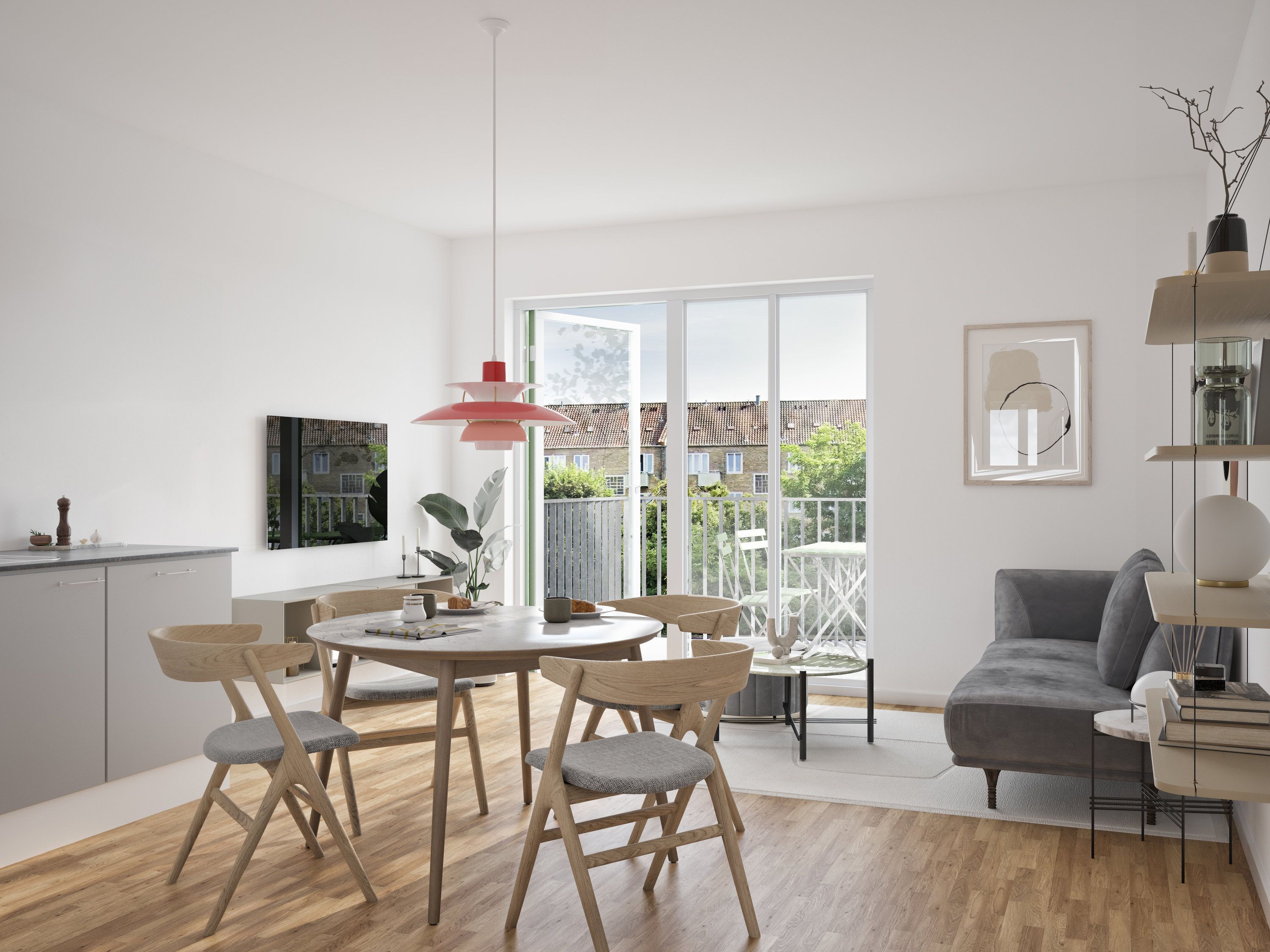 Alle lejligheder er indrettet med åbne og indbydende køkken-alrum, hvor køkken og opholdsrum smelter naturligt sammen. Materialevalget er gennemgående stilrent og moderne, og både køkken samt badeværelser er udført i gode, anerkendte og flotte materialer.