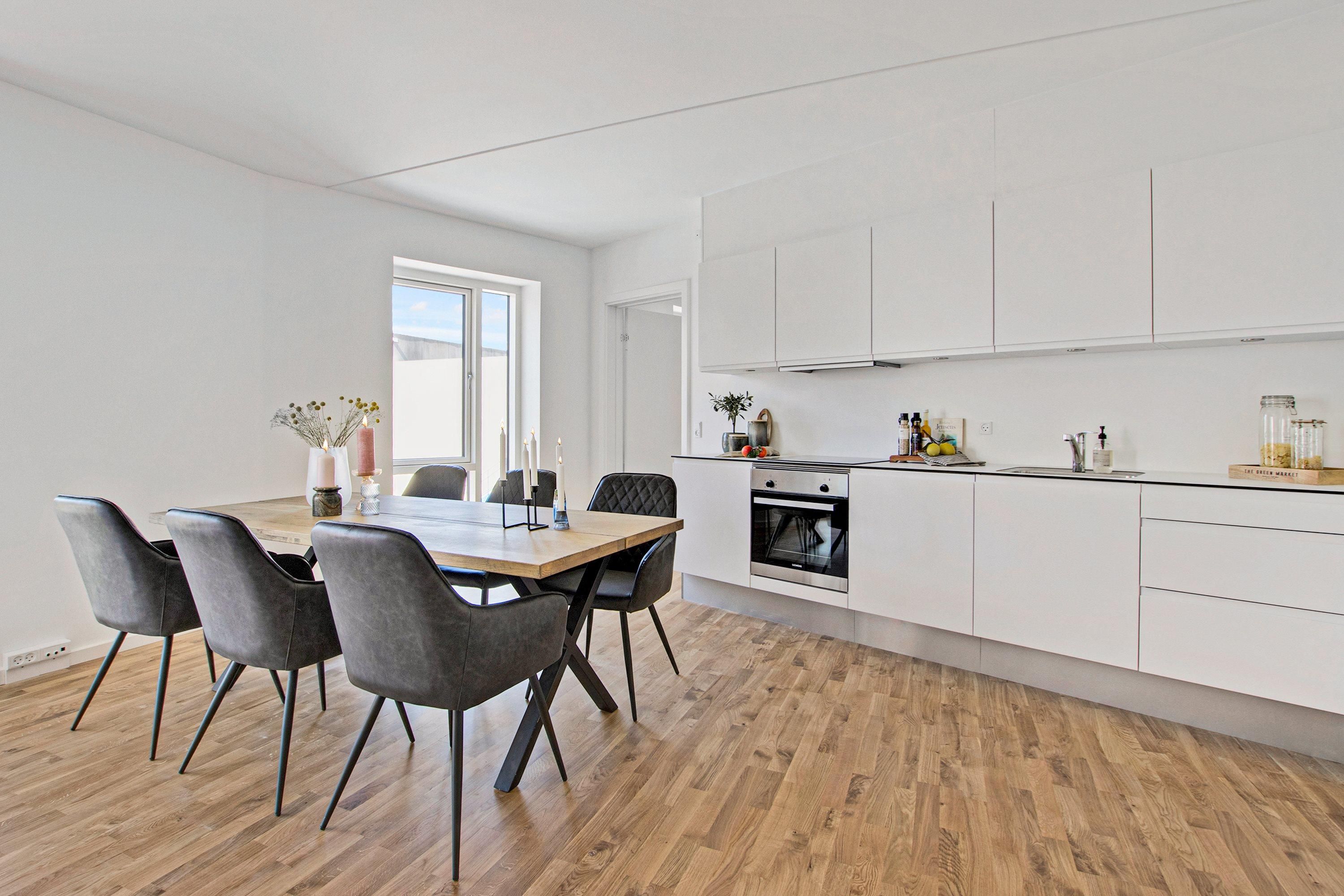 **Moderne lejlighed i Ørestad** Søger I en indflytningsklar bolig med en god beliggenhed? Så skal I vende blikket mod disse lejligheder i Ørestad, som er en familievenlig bydel på Amager, der karakteriserer sig ved arkitekttegnede bygninger og en tæt placering på vand og natur. Læg dertil en skøn nærhed til hverdagens gøremål, og resultatet bliver en perfekt base for jeres nye tilværelse. Disse boliger udbydes i varierende størrelsesordener, så I kan frit vælge mellem to- til fireværelseslejligheder. På denne måde henvender de sig til en bred målgruppe fra den enlige til parret og børnefamilien. Boligerne byder på en praktisk rumfordeling, en moderne indretning, lækre kvalitetsmaterialer og lyse omgivelser. I bydes velkommen i entréen, hvorfra boligen udfolder sig via en veldisponeret planløsning uden spildplads. Her kan I glæde jer til store vinduespartier, der sikrer et fantastisk lysindfald, hvilket skaber en let og indbydende stemning. Den forstærkes yderligere af den lyse, neutrale farveskala, den stilrene indretning og det hvide inventar, som udtrykker en tidløs elegance. Tilmed er det værd at fremhæve, at lejlighederne i stueplan har adgang til egen terrasse, mens de øvrige lejligheder har altaner. Som prikken over i’et er der mulighed for at leje en parkeringsplads. Beliggenheden er pragtfuld med Vestamager Station, bus, indkøb, skole og daginstitution indenfor en radius af blot 600 meter, så det bliver ingen sag at løse hverdagens puslespil. Tilmed får I kort afstand til Kalvebod Fælled, som inviterer til hyggelige gåture i naturskønne omgivelser. På cykel er der ikke langt til Field’s med lækre spisesteder, spændende butikker og dagligvareindkøb, mens Amager Fælled sætter tempoet ned med afslapning i det fri. Afslutningsvis får I nem adgang til motorvejen, mens køreturen til Indre By kan klares på et kvarter. Adgang til og parkering i parkeringskælderen kan lejes til 800kr. pr. måned. OBS! Billeder, plantegning og tekst er vejledende og kan afvige fra boligens faktiske forhold. Hvis du er registreret i RKI kan vi desværre ikke tilbyde dig lejligheden. Dette kontrolleres ved udarbejdelse af lejekontrakt.
