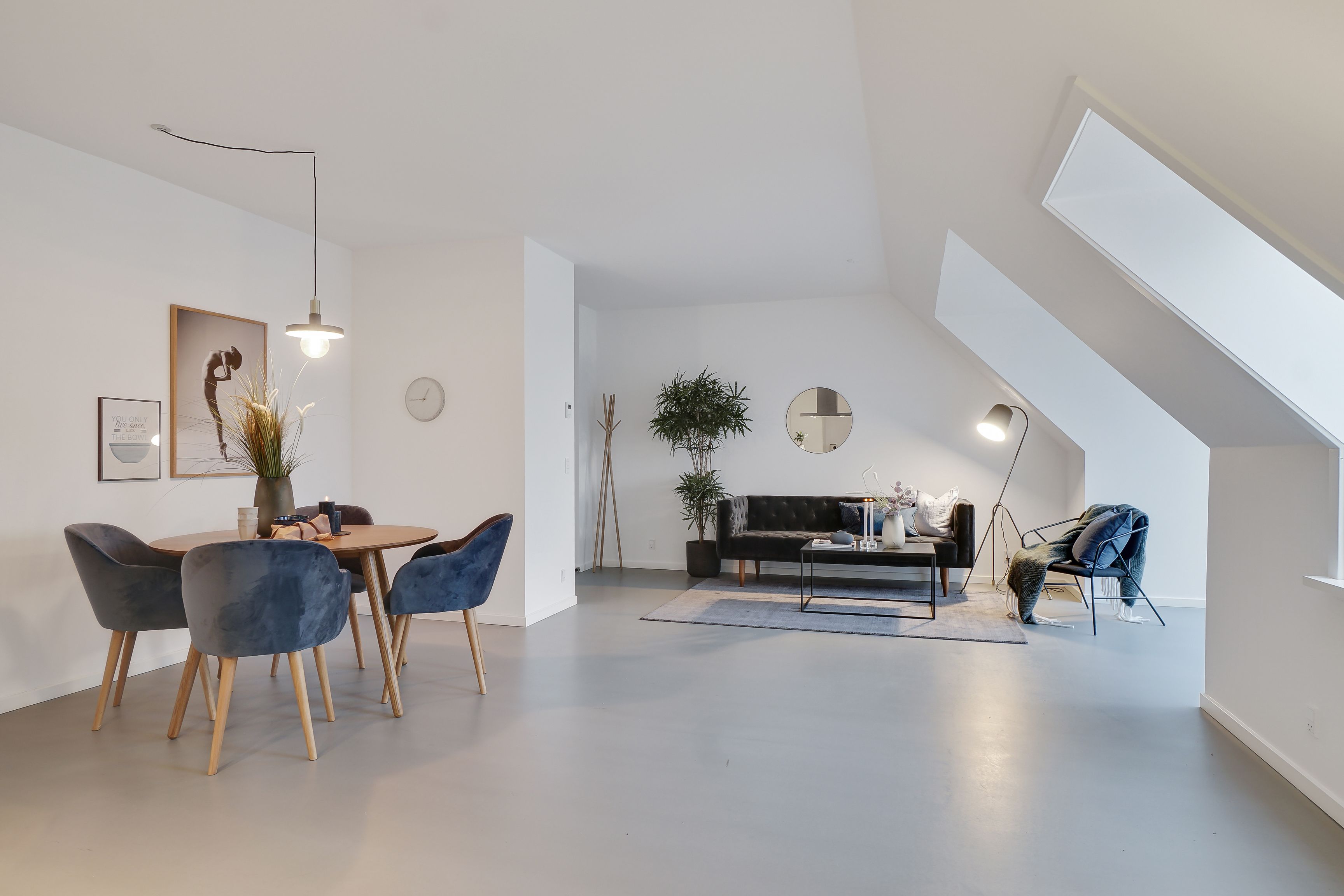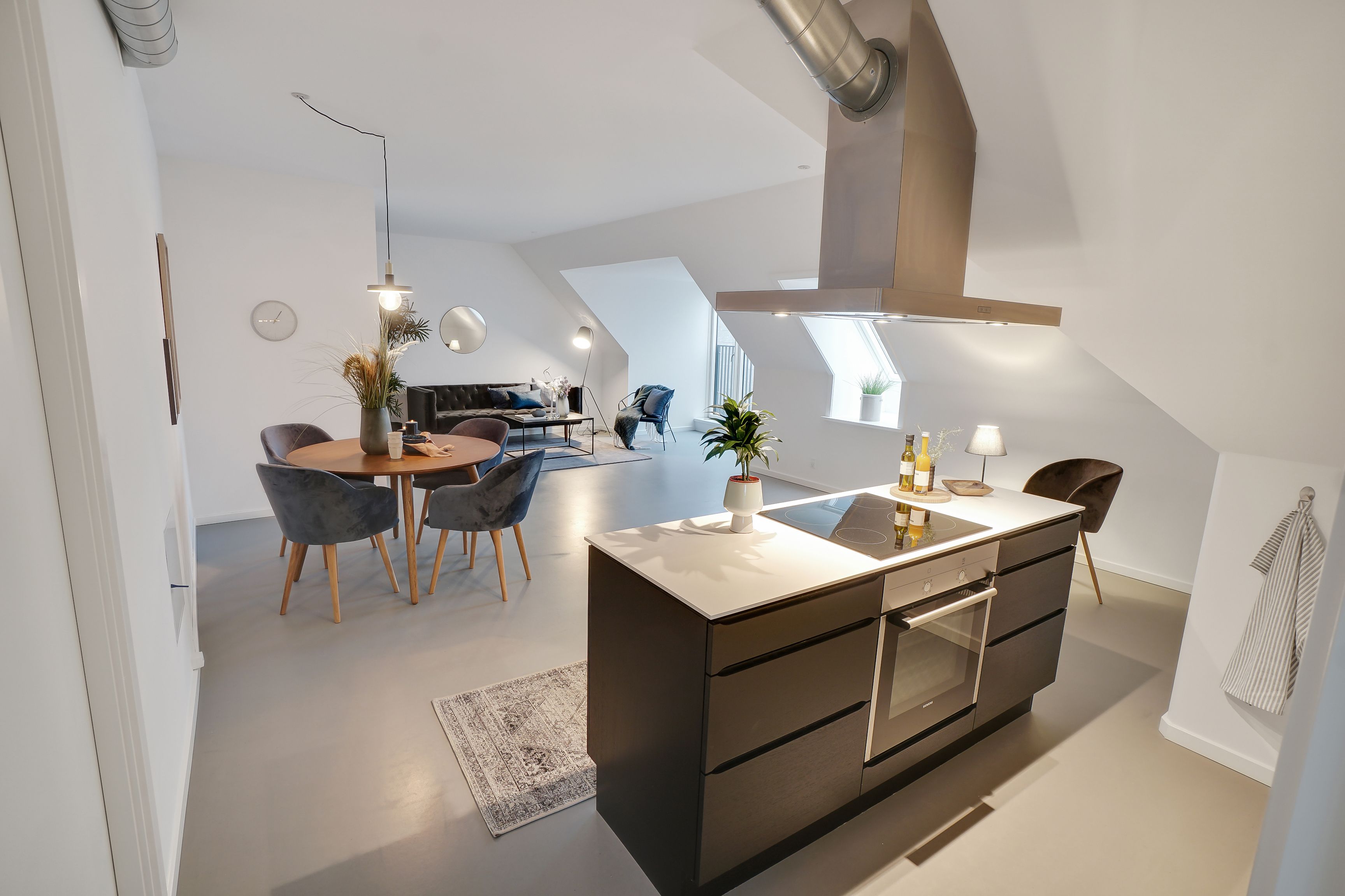 Lejligheden består af et lyst og åbent køkken-alrum, et elegant opholdsrum med komfortabel sovesofa samt moderne badeværelse. Boligen fremstår fuldt møbleret og indflytningsklar med materialer og detaljer i høj kvalitet.