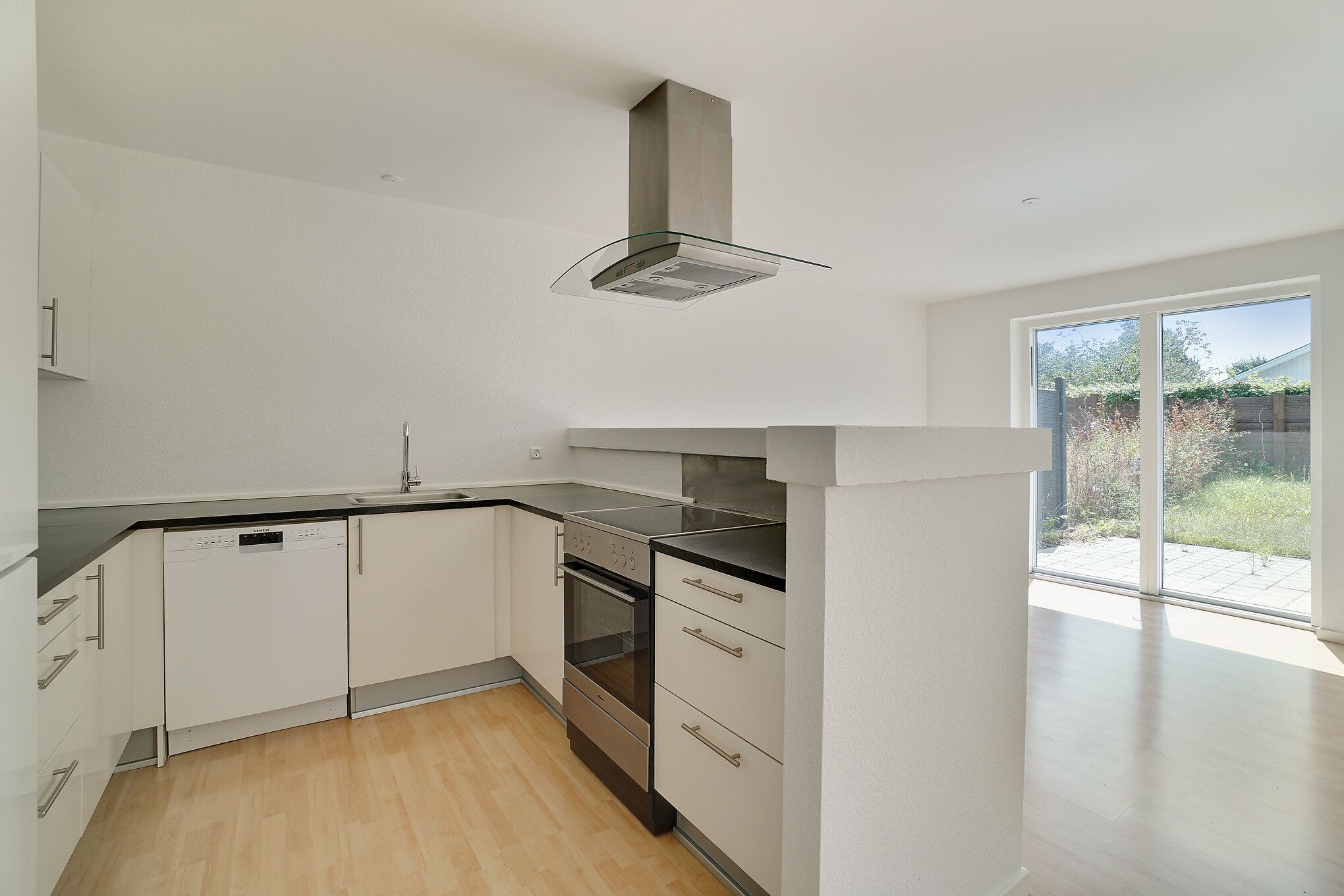 Herefter træder du ind i det store åbne køkken-alrum, hvor det smukke hvide Svane køkken, står i god kontrast til de varme egetræsparketgulve med gulvvarme. Køkkenet har alt i hårde hvidevarer, kogeplade, køle-/fryseskab, indbygningsovn og opvaskemaskine. Det store lyse køkken-alrum kan fint indrettes med spiseafdeling i forlængelse af køkkenet samt et hyggeligt stueområde. Fra alrummet har man udgang til en dejlig stor sydvendt altan, hvor udelivet og solen kan nydes med et glas koldt at drikke eller en god kop kaffe.