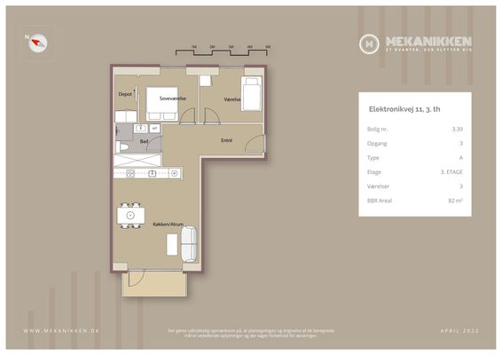 3 vær. lejlighed på 82 m²