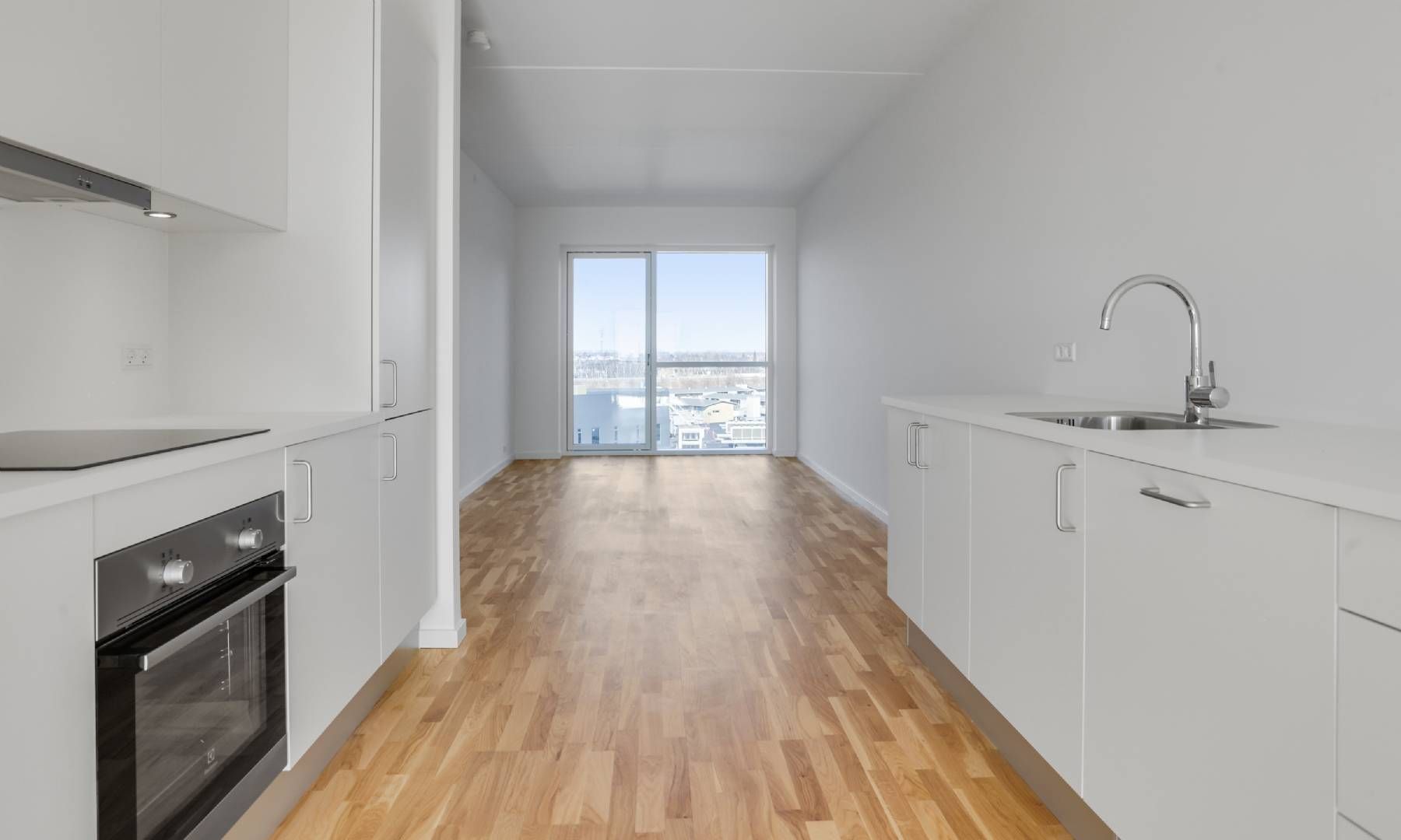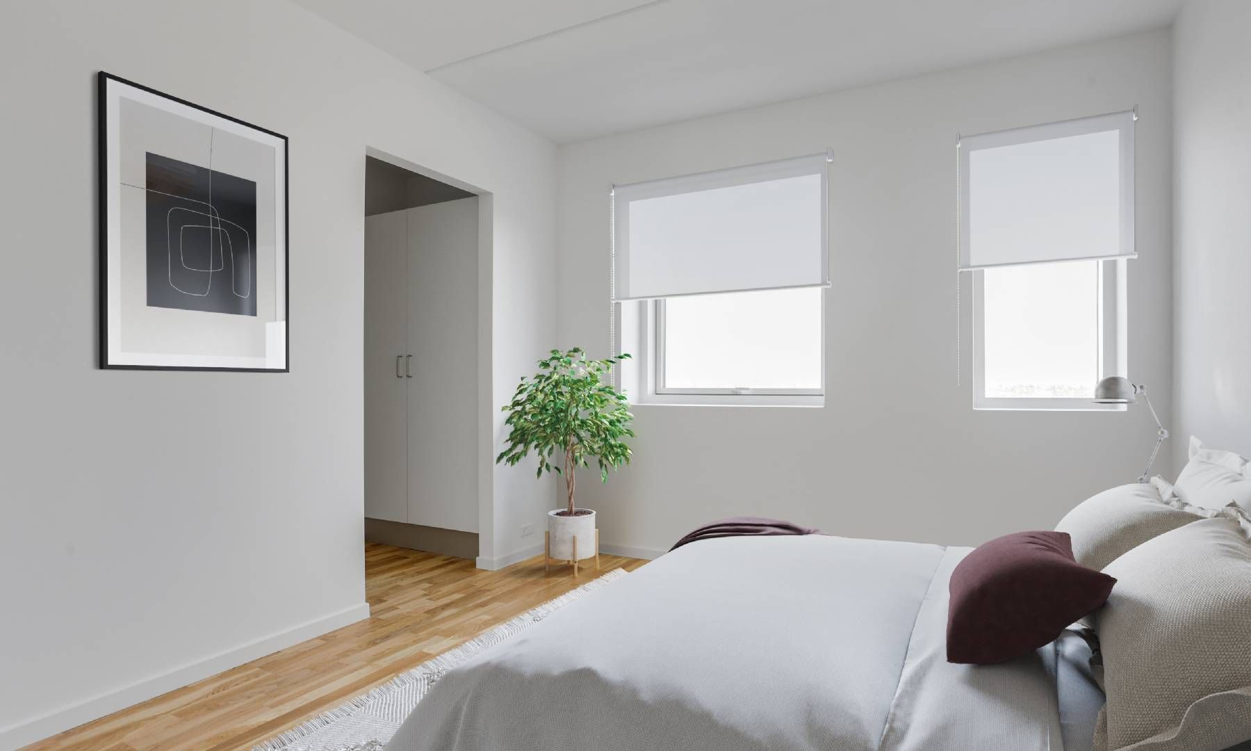 Soveværelset har en rolig atmosfære og god plads til både seng og opbevaring, mens køkkenet er praktisk indrettet med gode arbejdsforhold og skabsplads. Badeværelset fremstår funktionelt med bruseniche, toilet og håndvask, og entréen binder boligen pænt sammen med adgang til alle rum.