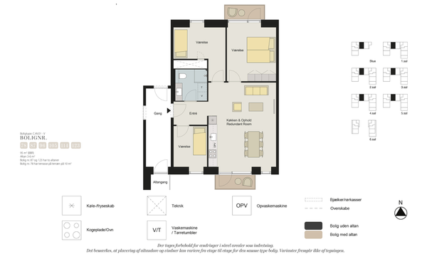 3 værelses lejlighed med vestvendt altan