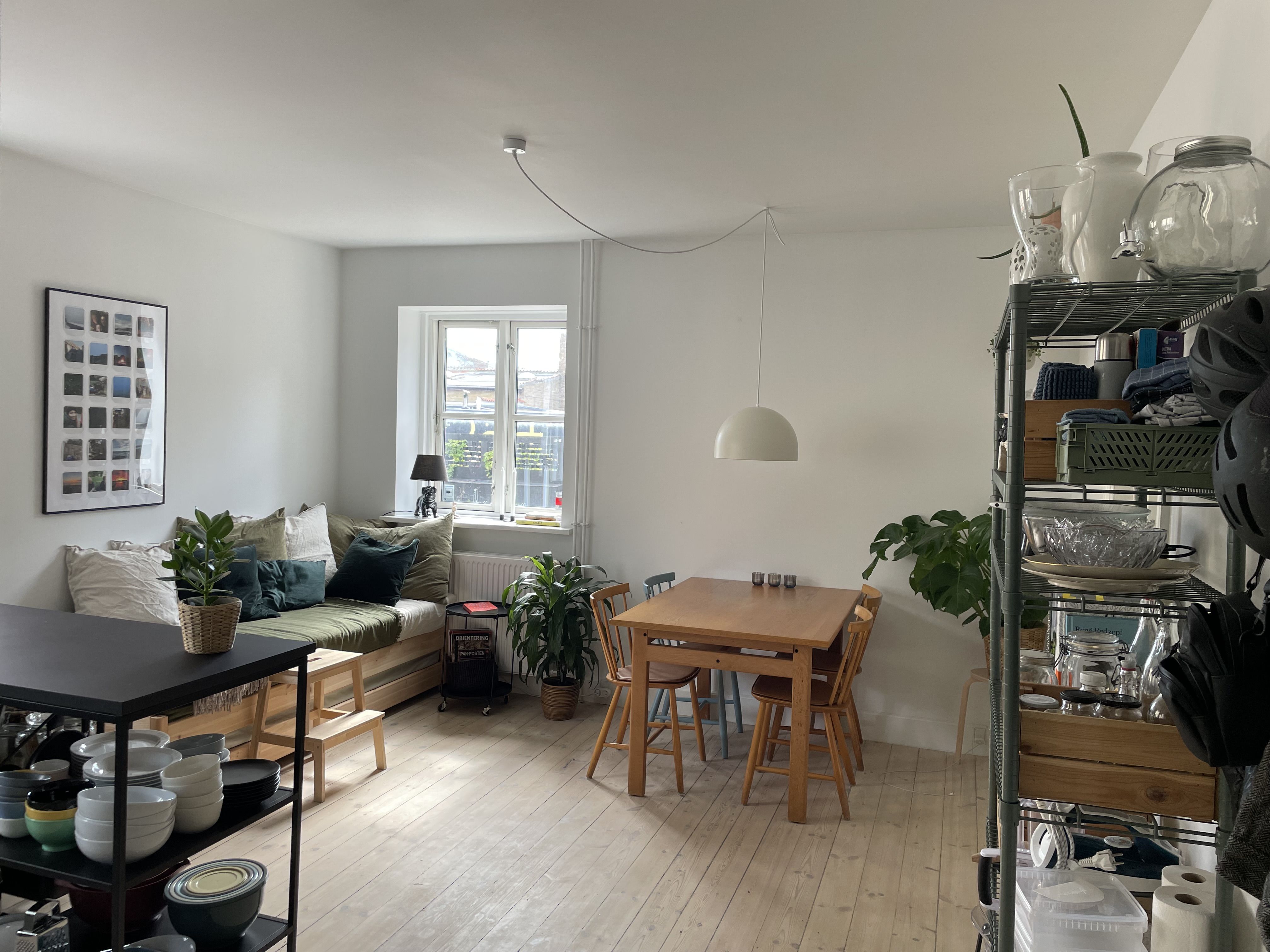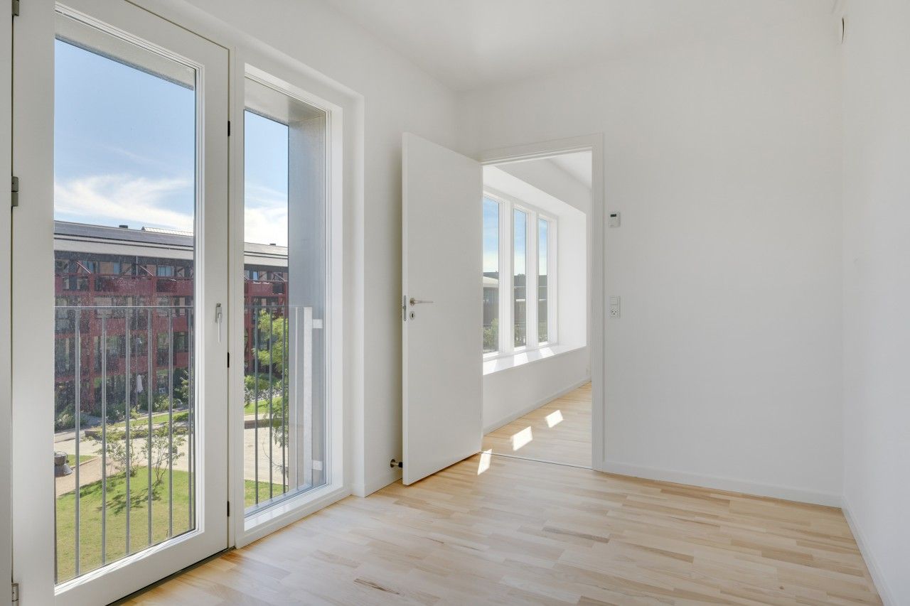 Den store stue er lejlighedens naturlige samlingspunkt med flot trægulv, store vinduespartier og udgang til en stor altan. I stuen er der rigelig plads til både sofaafdeling og spisebord. Dertil kommer et værelse, som egner sig perfekt til soveværelse eller kontor.