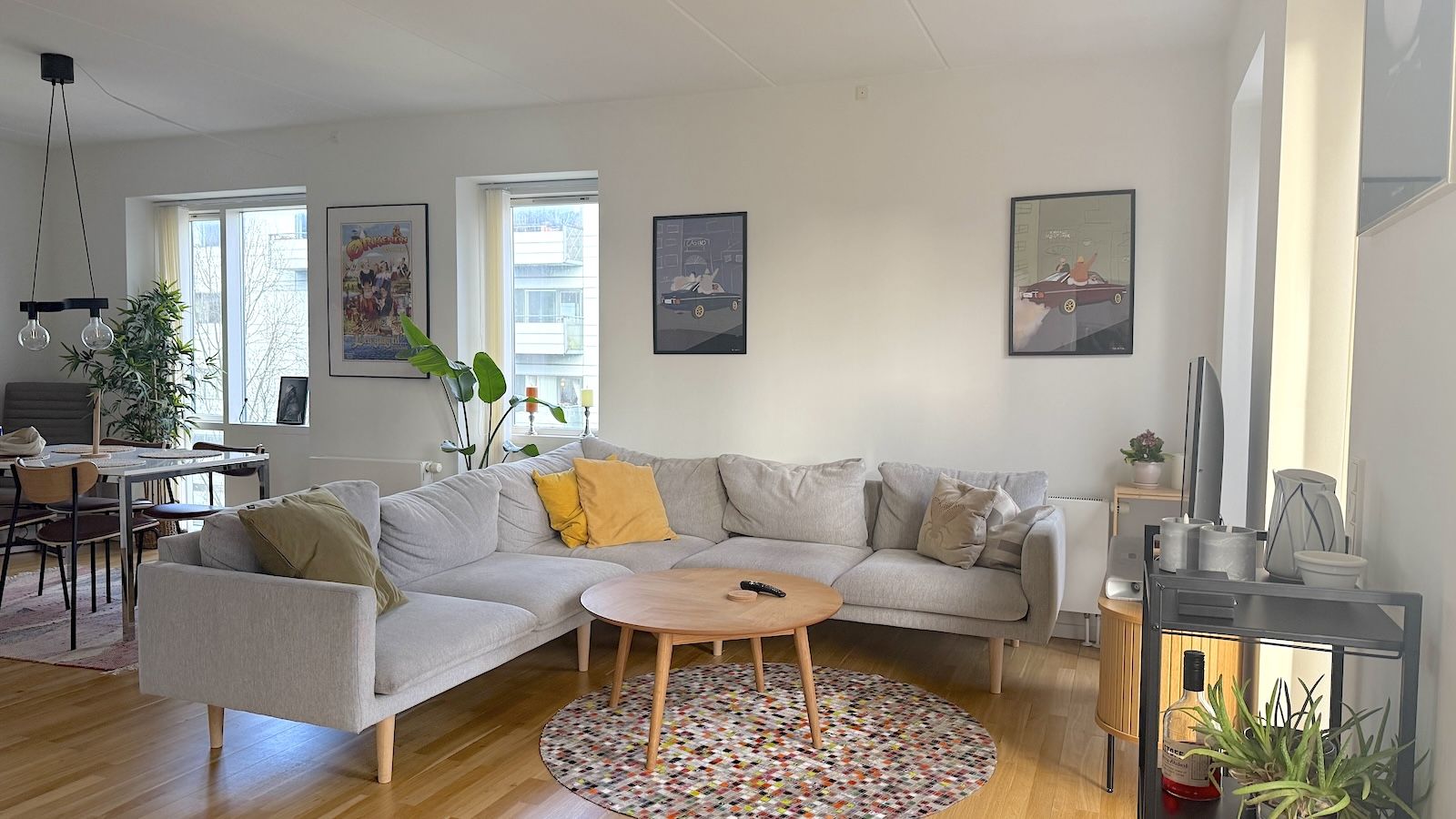 Lejligheden indeholder: Åben entré med garderobeskab og adgang til et praktisk depotrum, som giver ekstra opbevaringsmuligheder. Lejlighedens hjerte er det store køkken/alrum, der er udstyret med alle hårde hvidevarer og god skabsplads. Køkkenet ligger ydermere i åben forbindelse med den lyse stue, hvor der er videre udgang til den private terrasse. Badeværelset er rummeligt og moderne med separat bruseniche, vaskemaskine og tørretumbler – alt sammen integreret i en funktionel og stilren indretning. Lejligheden rummer også en skønt lyst soveværelse med indbyggede skabe. Ejendommen tilbyder desuden to fælles tagterrasser, som er indrettet med plads til både leg og hyggelige stunder.