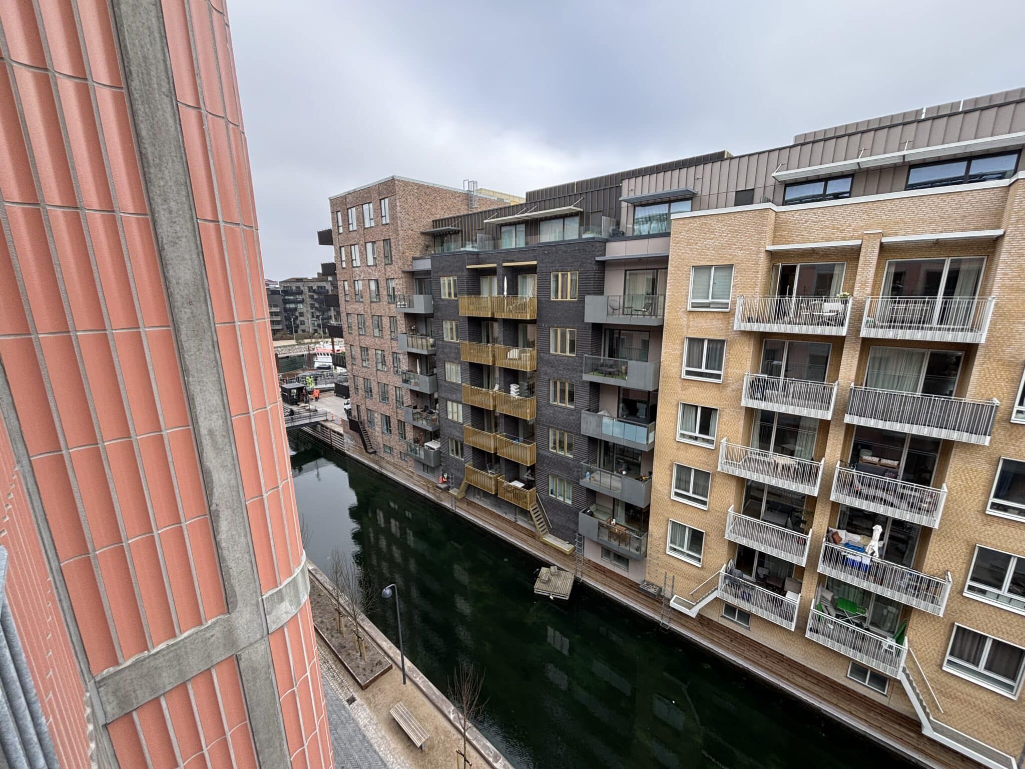Denne skønne, møblerede hjørnelejlighed er beliggende med en af de absolut bedste placeringer i Nordhavn, lige ved Kronløbsøen, hvor du får en enestående udsigt til både det åbne vand og det levende, hyggelige gademiljø. Lejligheden byder på et fantastisk lysindfald fra de store vinduespartier, som bringer vandet i kanalerne helt tæt på og skaber en lys og indbydende atmosfære i hele boligen. Det åbne køkken og stue smelter naturligt sammen og herfra er der adgang til en rummelig altan, hvor udsigten til både kanalen og det åbne hav virkelig kan nydes i fulde drag. Boligen rummer to gode soveværelser, begge indrettet med dobbeltsenge og garderobeskabe, samt et rummeligt og lyst badeværelse. Som beboer i Nordhavn får du adgang til et attraktivt område med havnebad, gode indkøbsmuligheder, luksusbiograf, hyggelige caféer og restauranter samt nem adgang til Metroen. // This beautiful, furnished corner apartment is located in one of the absolute best locations in Nordhavn, right by Kronløbsøen, where you get a beautiful view of both the open water and the lively, cozy street environment. The apartment offers fantastic light from the large windows, which bring the water in the canals very close and create a bright and inviting atmosphere throughout the home. The open kitchen and living room merge naturally and from here there is access to a spacious balcony, where the view of both the canal and the open sea can really be enjoyed to the fullest. The home has two good bedrooms, both furnished with double beds and wardrobes, as well as a spacious and bright bathroom. As a resident of Nordhavn, you get access to an attractive area with a harbor bath, good shopping opportunities, a luxury cinema, cozy cafes and restaurants, and easy access to the Metro.