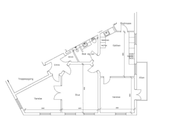 3 værelses lejlighed på 95 m²