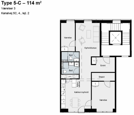 3 vær. lejlighed på 107 m²