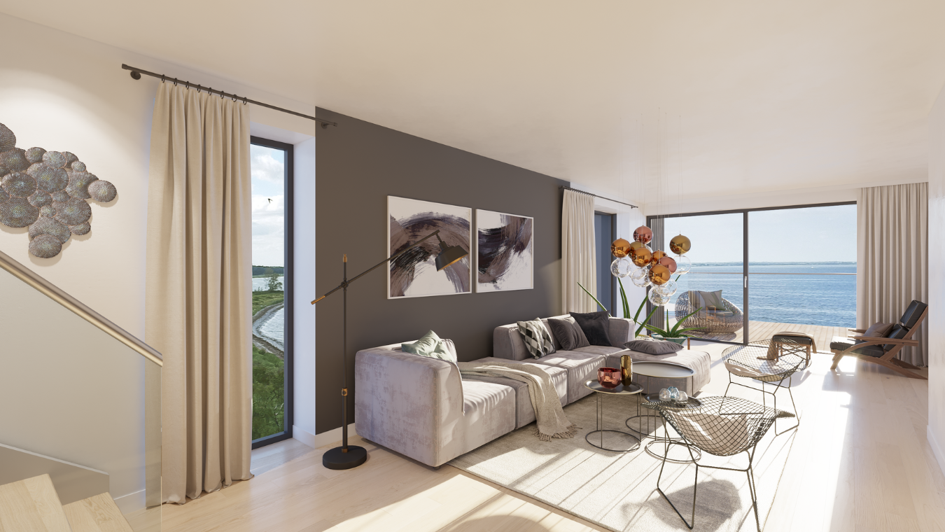 Alle boliger er opført i gode kvalitetsmaterialer med et lækkert interiør samt udstyret med en dejlig altan. Hele bebyggelsen vil være omringet af grønne områder og et ny-etableret strandmiljø.