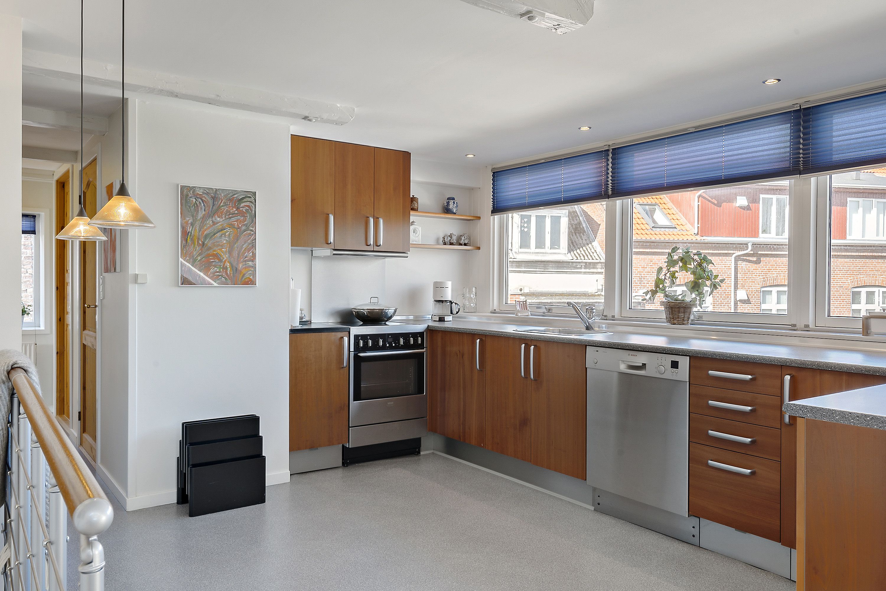 Boligen ligger med udsigt til åbne marker, fra fælles arealerne