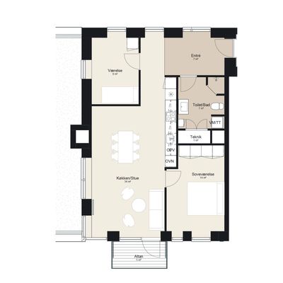 3 vær. lejlighed på 60 m²