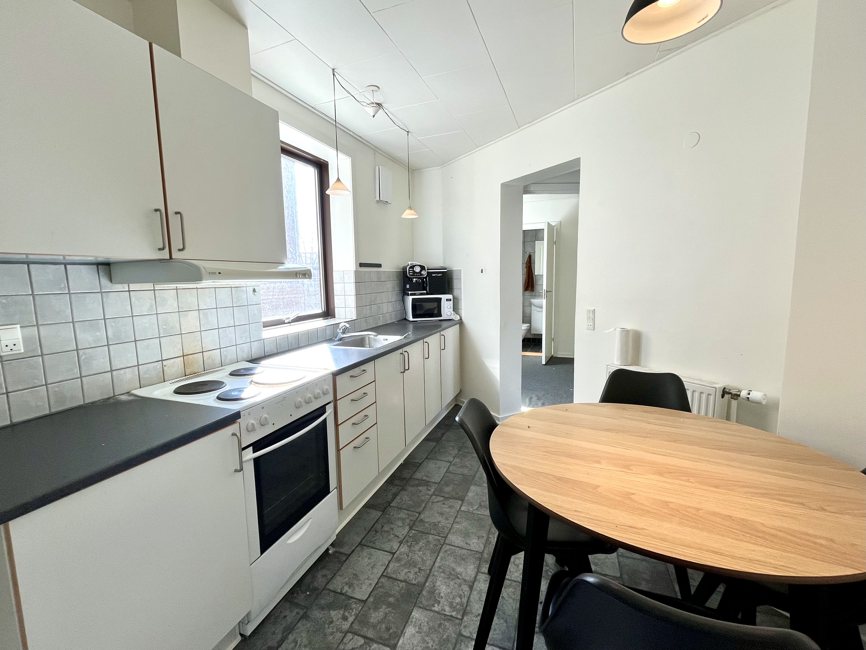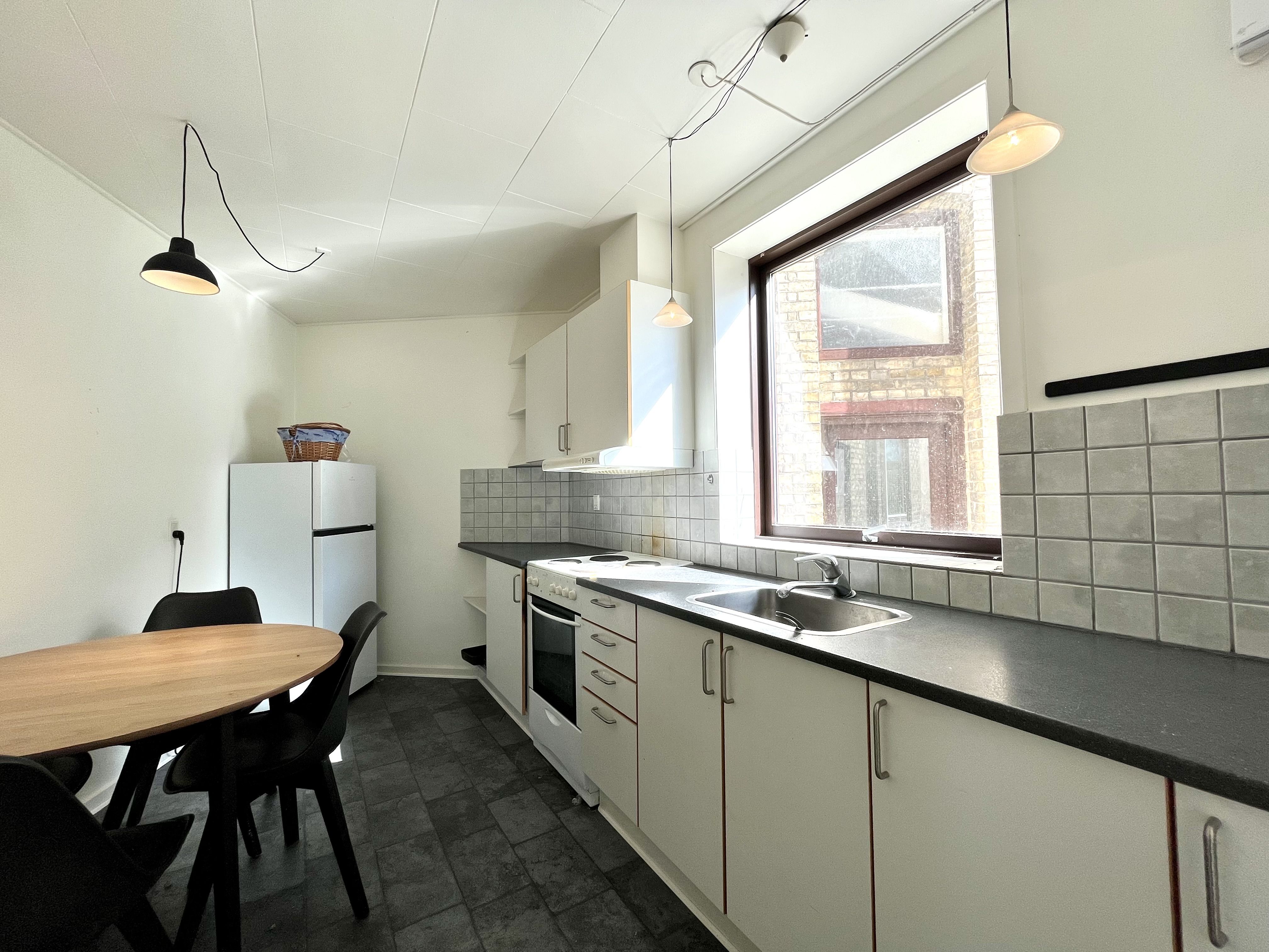 Super hyggelig 2 værelses udlejes. Ejendommen har lige fået nyt tag og nye vinduer og fremtræder meget flot. Ejendommen ligger for enden af gågaden og der er således nem adgang til byen.