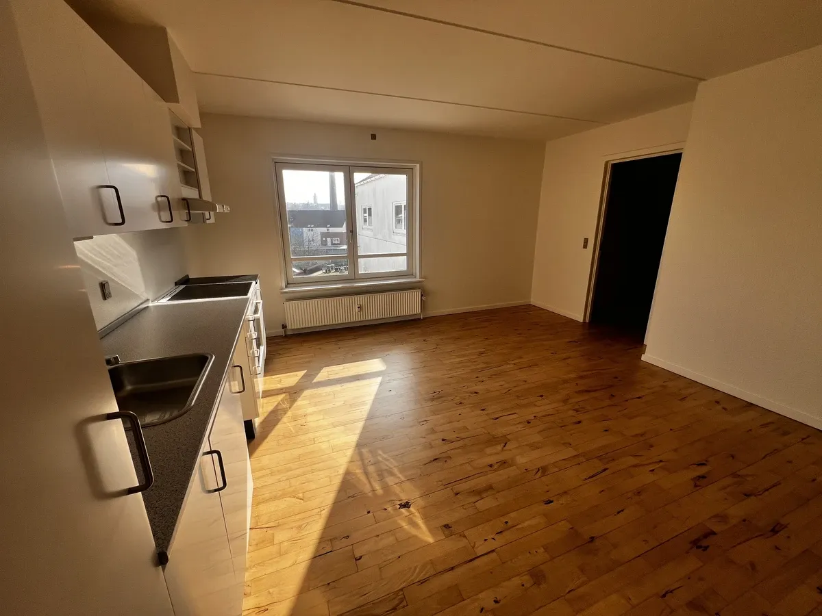 Velkommen til denne skønne og velindrettede lejlighed øverst i ejendommen – perfekt til både par og enkeltpersoner, der drømmer om en bolig med både komfort og nærhed til byens muligheder. Lejlighedens hjerte er det rummelige køkken-alrum, hvor det moderne køkken smelter sammen med opholdsstuen og den vidunderlige altan. Her strømmer lyset ind og skaber en luftig og indbydende atmosfære – det perfekte sted at samle venner til middag eller nyde en rolig morgen med udsigt over byen. Soveværelset er rummeligt og skaber de ideelle rammer for afslapning, mens det stilrene badeværelse byder på en separat bruseniche for ekstra komfort. Som prikken over i'et har du en hyggelig hems. Her får du en bolig, der kombinerer funktionalitet med hygge –helt ugeneret øverst i ejendommen, hvor du kan nyde roen og den skønne udsigt. Kontakt os allerede i dag for en fremvisning – vi glæder os til at byde dig velkommen hjem! Her får du muligheden for at bo i en klassisk ejendom fra 1921, der smelter perfekt sammen med gadens hyggelige og stemningsfulde udtryk. Atmosfæren emmer af sjæl og karakter, og du vil straks føle dig hjemme i de smukke omgivelser. Ejendommen byder på moderne bekvemmeligheder med dørtelefon for ekstra tryghed og adgang til en dejlig, fælles have – et skønt sted at nyde en kop kaffe på en solrig dag. I kælderen har du dit eget depotrum til ekstra opbevaring, og her finder du også et fælles vaskerum, hvor du har mulighed for at installere din egen vaskemaskine og tørretumbler. Bemærk venligst, at kæledyr desværre ikke er tilladt. Det er ikke muligt at leje en bolig i ejendommen såfremt du er registreret i RKI. Beliggenheden her er helt ideel! Du får ro og grønne omgivelser, samtidig med at du er tæt på alt det, der gør hverdagen nem og bekvem. Hverdagsindkøbene klares let med butikker lige i nærheden, og med Kolding Storcenter tæt på har du adgang til alt fra specialbutikker til caféhygge. Skal du lidt længere væk, giver den nemme adgang til motorvejsnettet en ubesværet transportmulighed. Området emmer af charme med smuk natur og grønne arealer lige uden for døren – perfekt til en frisk morgentur eller en afslappende gåtur i aftensolen. Her får du en bolig, der forener komfort, praktik nærhed og natur i skøn en harmoni.