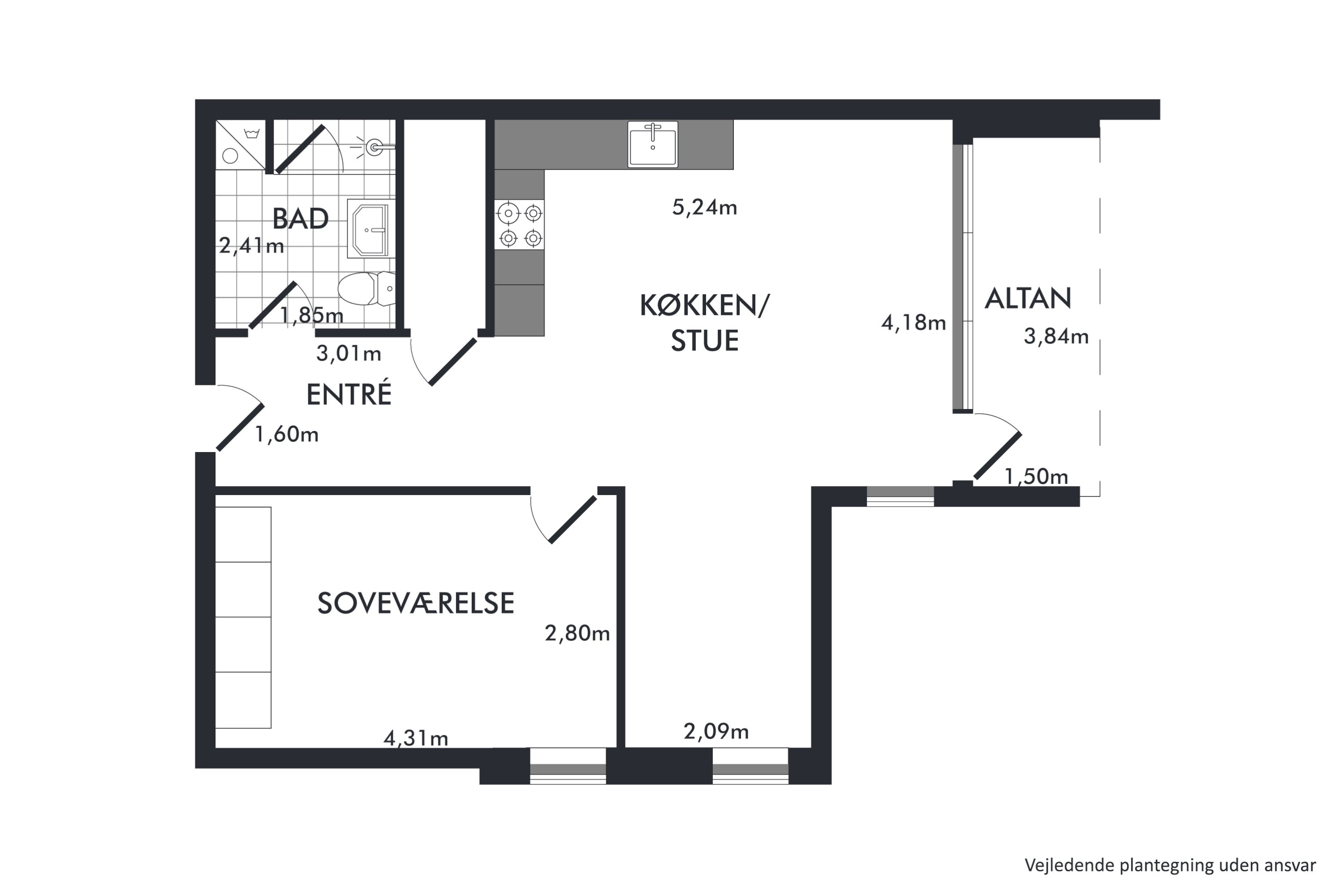 Billeder og plantegning er fra et lignende lejemål i ejendommen.