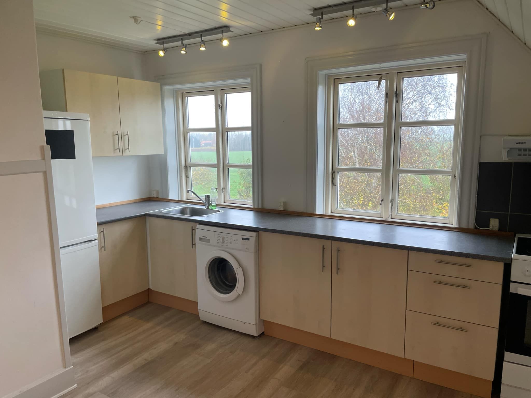 Lejemålet indeholder en rummelig stue med flot lysindfald fra flere vinduer og udsigt til åbne omgivelser. Der er åbent køkken i forbindelse med stuen med god skabsplads, komfur, emhætte samt køle-/fryseskab. Badeværelset fremstår lyst med separat vaskemiljø og vaskesøjle. Derudover byder lejligheden på gode indretningsmuligheder og en praktisk planløsning. Ejendommen er beliggende centralt i (Køng)Lundby med kort afstand til indkøb og offentlig transport. En fin bolig til dig, der ønsker rolige omgivelser med nem adgang til hverdagens faciliteter.