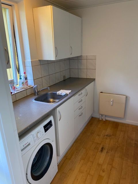 Lejlighed på første sal , med egen indgang. består af trappe op entre toilet ,køkken stor stue og stor værelse.