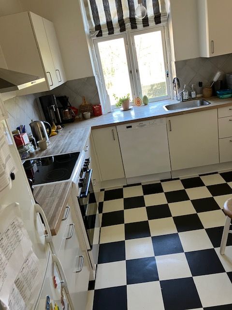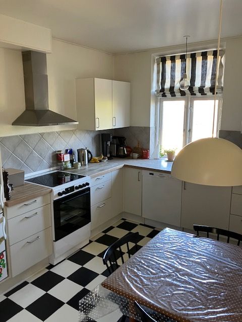 Lejligheden byder på et skønt køkken-alrum med nyt køkken i klassisk, lyst design og god plads til både spisebord og opholdsområde. Der er i alt tre gode værelser, som gør boligen ideel til både par, en lille familie eller 2-3 personer, der ønsker at dele.