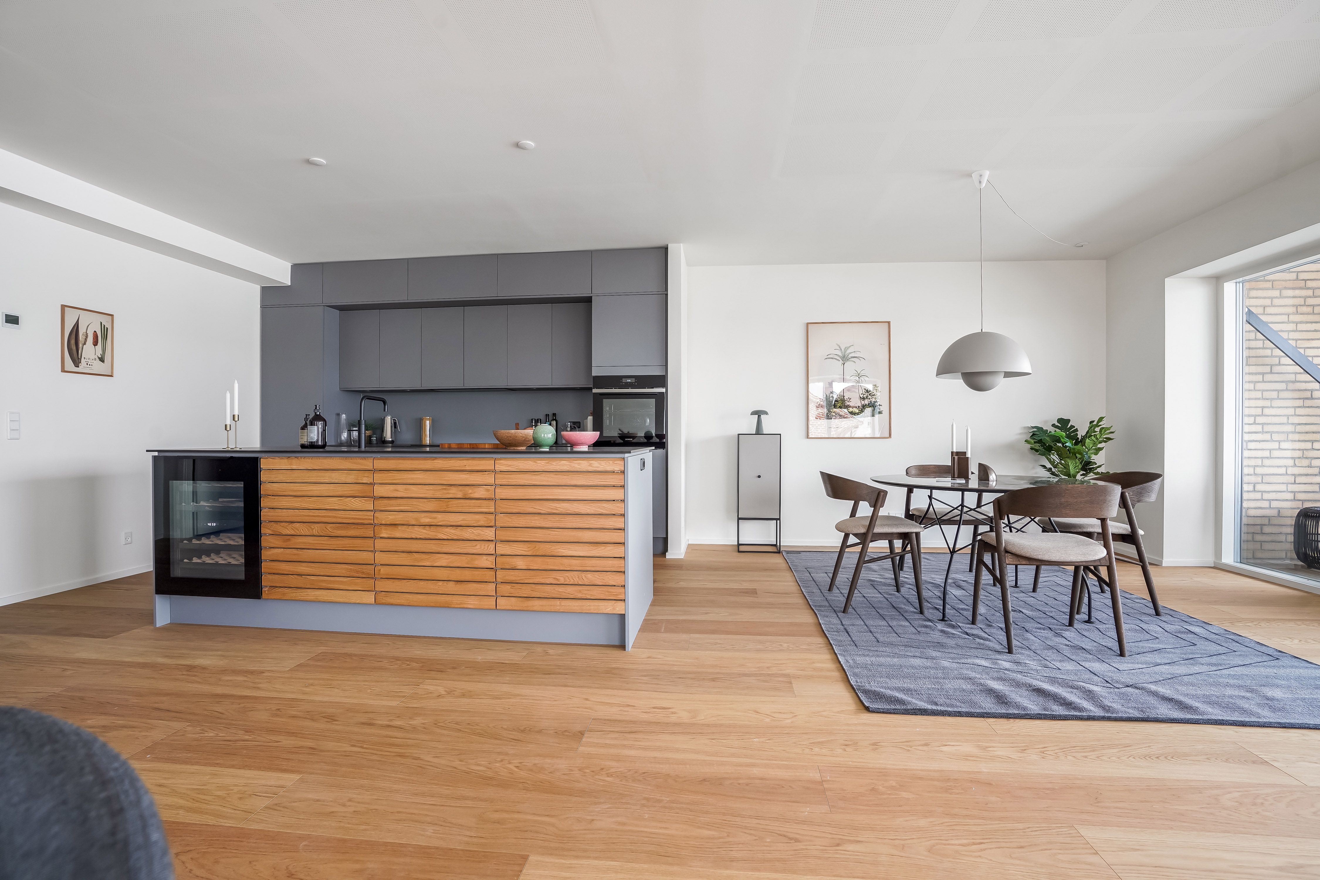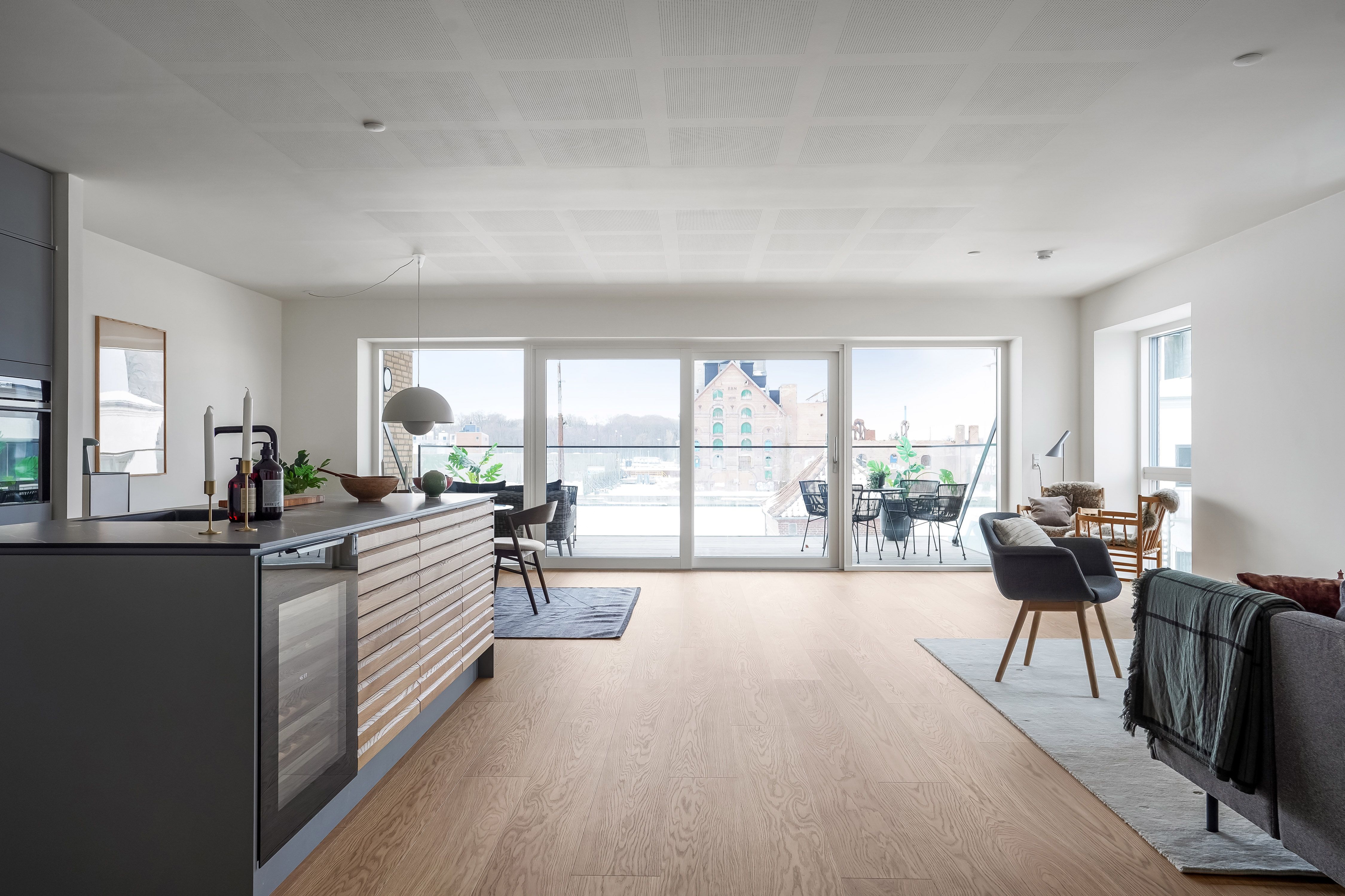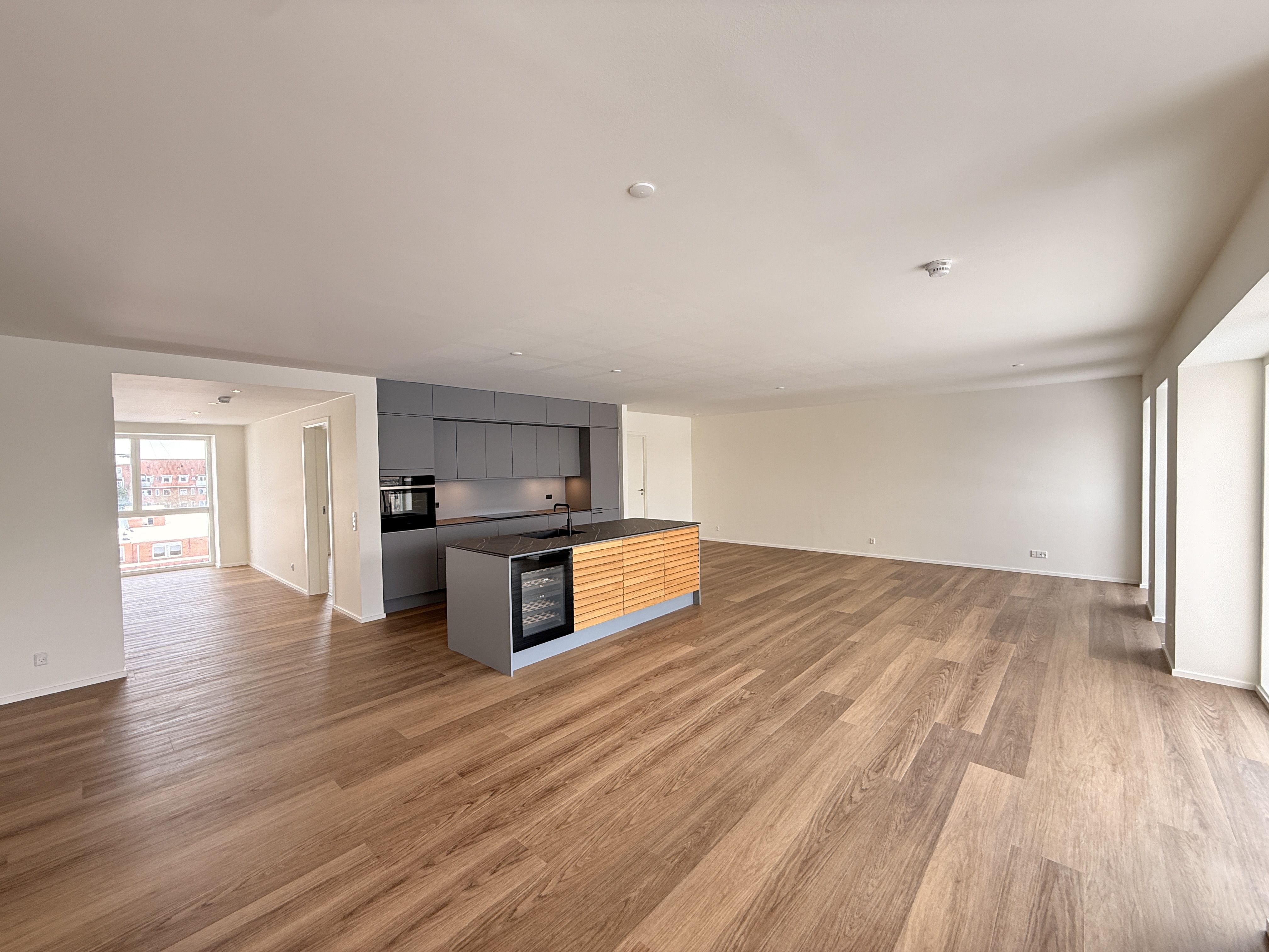 Lejlighederne varierer fra 134 til 169 m² som enten 3 eller 4 værelses, perfekt til både familier, par og singler med behov for ekstra plads, hjemmekontor og moderne komfort. Indretningen er gennemtænkt og udført i eksklusive materialer, inkl. HTH-køkken, smukke trægulve og to badeværelser.