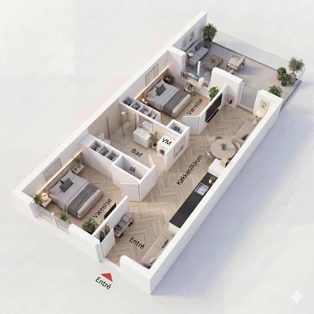 2 vær. lejlighed på 65 m²