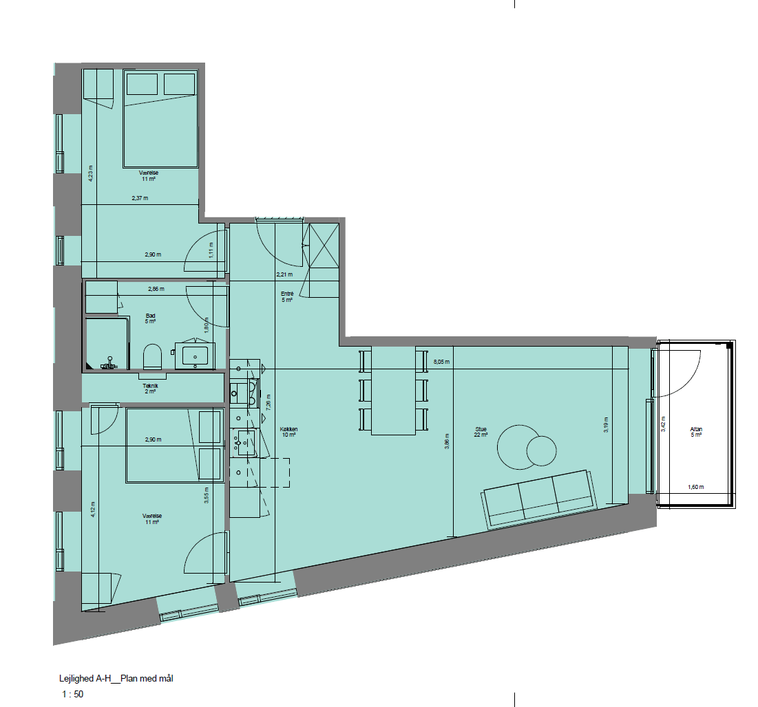 3 vær. lejlighed på 80 m²