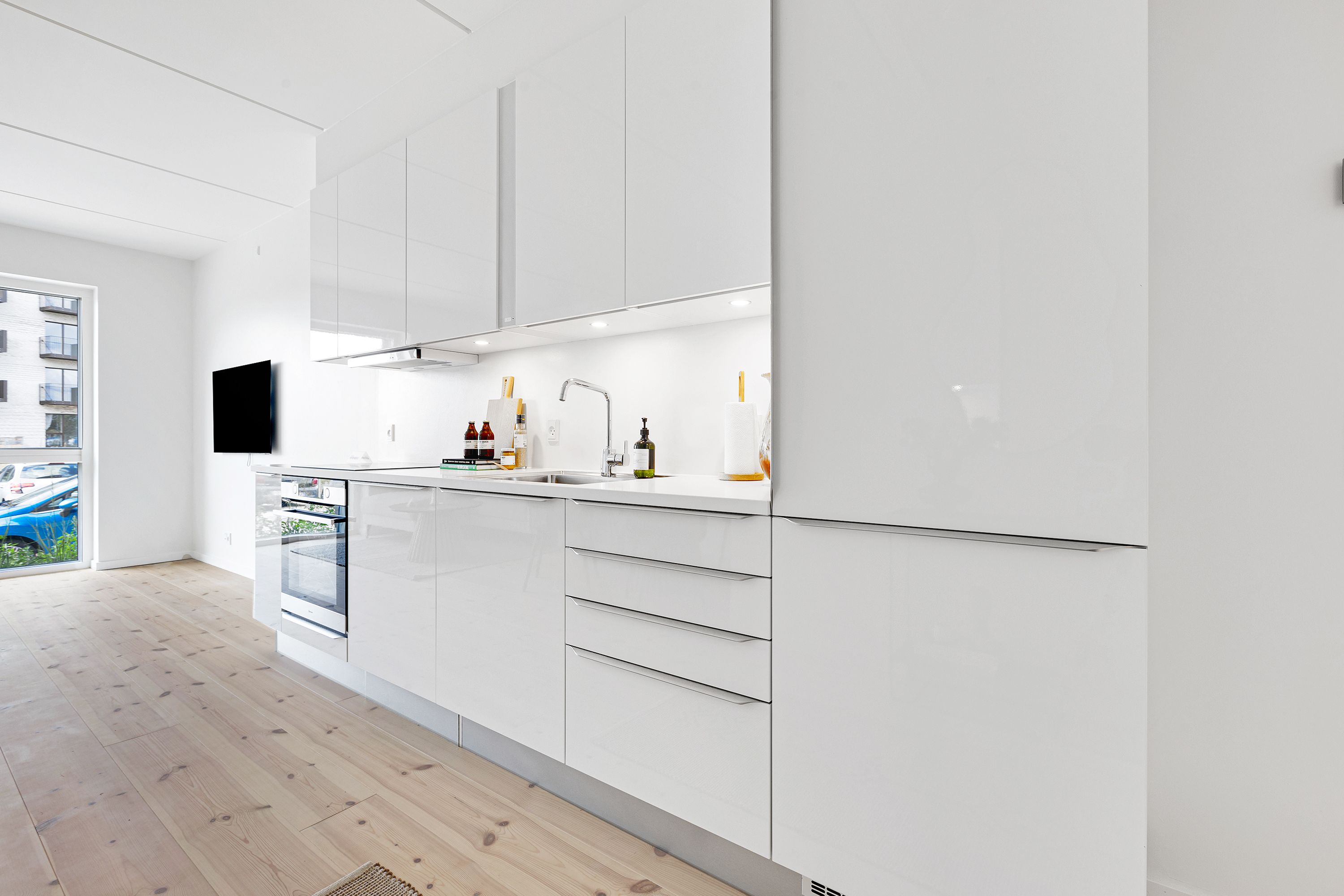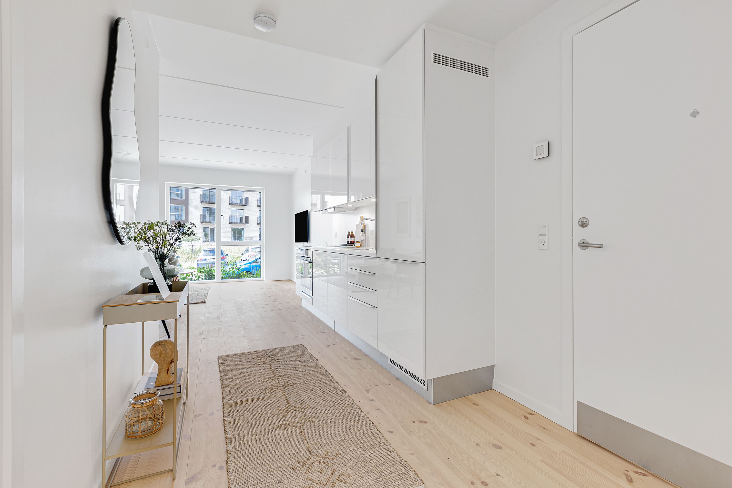Lys og moderne 2-værelses lejlighed på Pakhuskajen med udsigt til vandet! Denne stilfulde bolig er perfekt til både par og singler, der ønsker at bo i et attraktivt kvarter tæt på byen og naturen. Lejligheden byder på et rummeligt soveværelse, et åbent køkken-alrum med store vinduer, som skaber en lys og indbydende atmosfære, samt en skøn altan. Der er desuden gode opbevaringsmuligheder, og bygningen har elevator samt adgang til fælles faciliteter. Tæt på offentlig transport, indkøb og grønne områder. Obs. billeder fra lignende boliger.