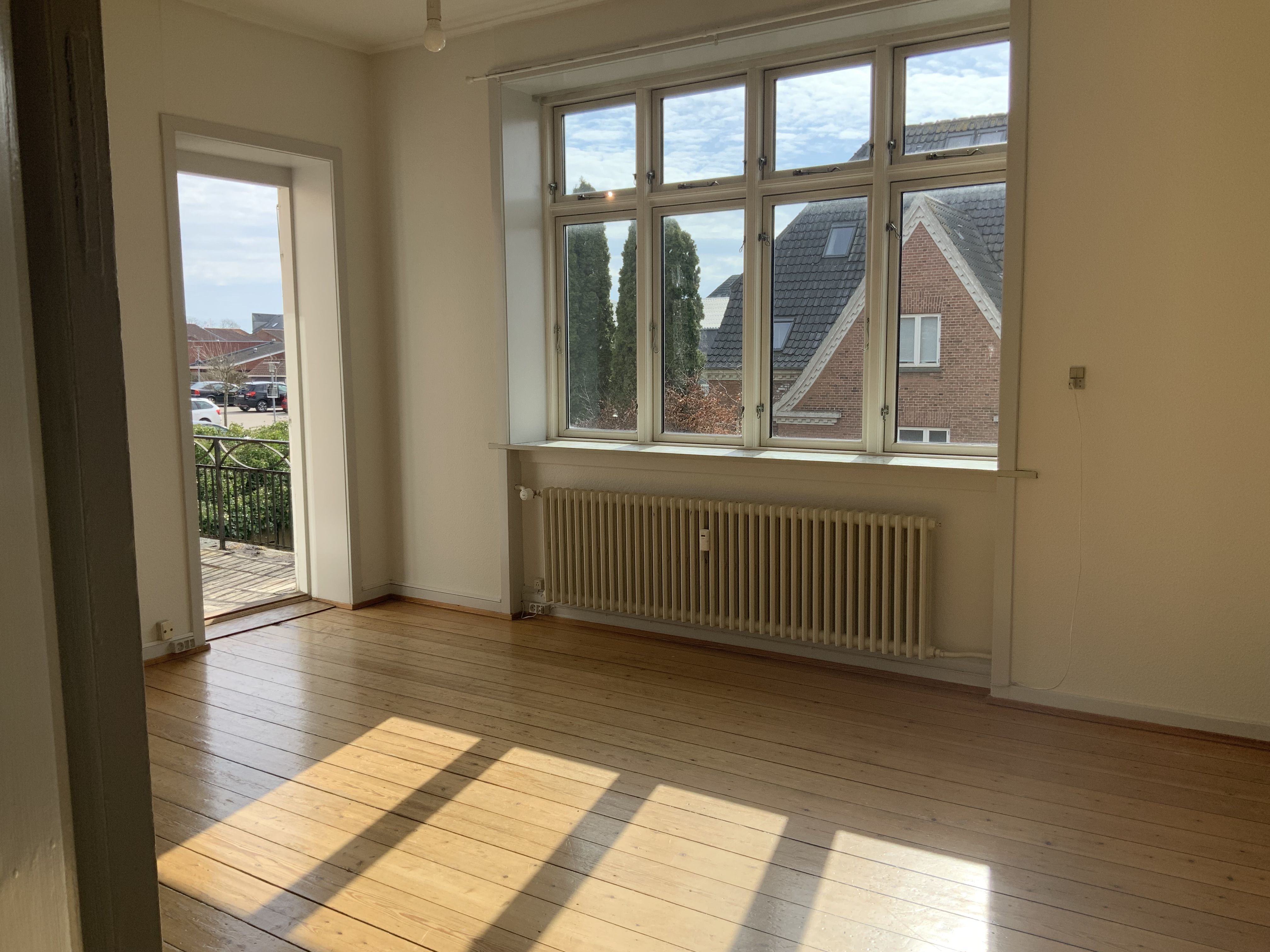 I klassisk rødstensejendom fra 1930\'erne med en meget central placering i Odense C - tæt på alt - udlejes moderniseret stor lys 2 værelses lejlighed på ca. 65 kvm. med lyse vægge, afhøvlede giulve og altan.