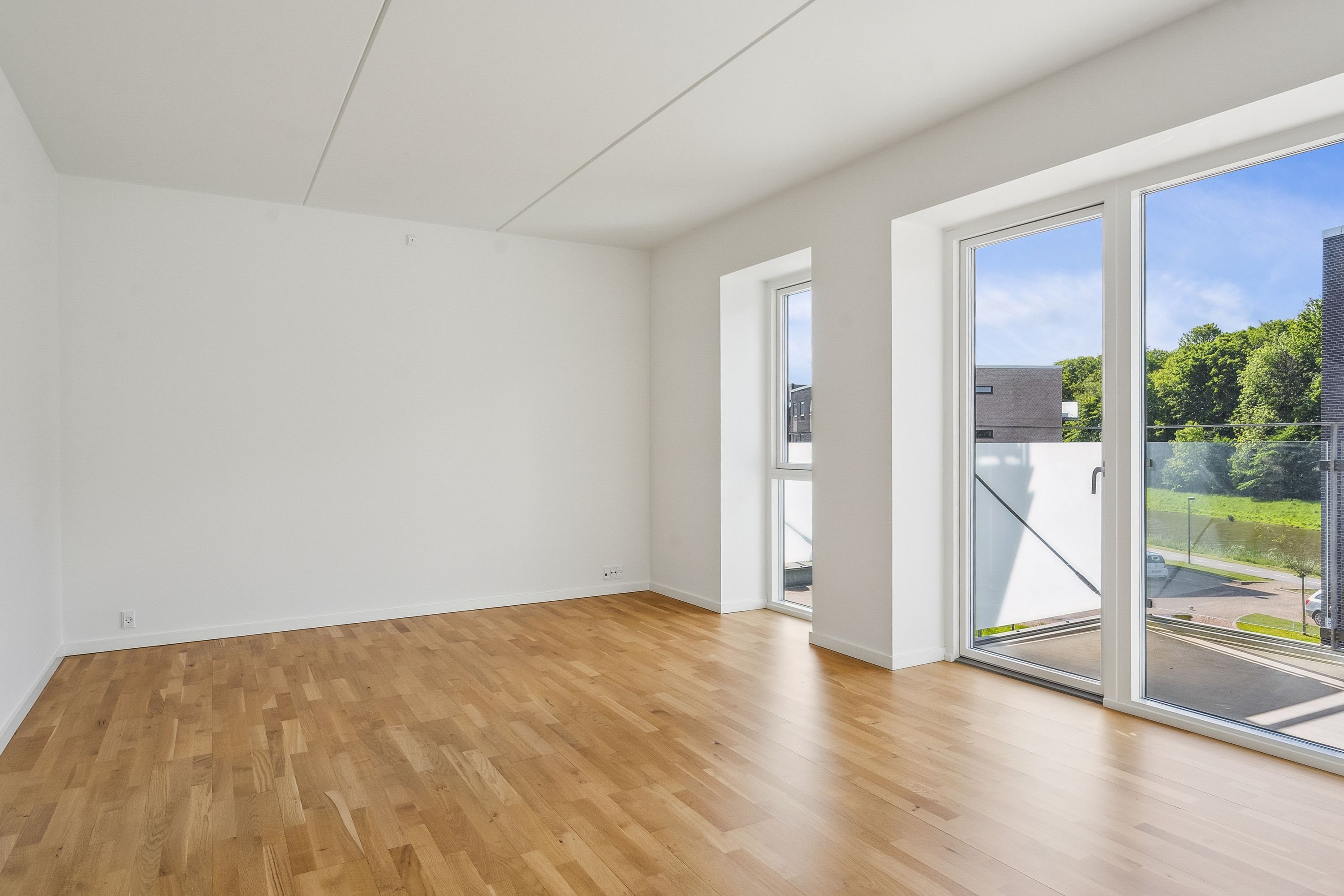 Lejlighederne byder på tids-løst design og kvalitetsmaterialer, der sammen med de store vinduespartier og hvidmalede vægge medfører en lys og rummelig atmosfære i alle rum. Når du træder ind i lejlighederne, bliver du mødt af en indbydende entré, der fører til den åbne stue, som er forbundet med et veludstyret køkken. Køkkenet er moderne med hvide skabsfronter og god opbevaringsplads.