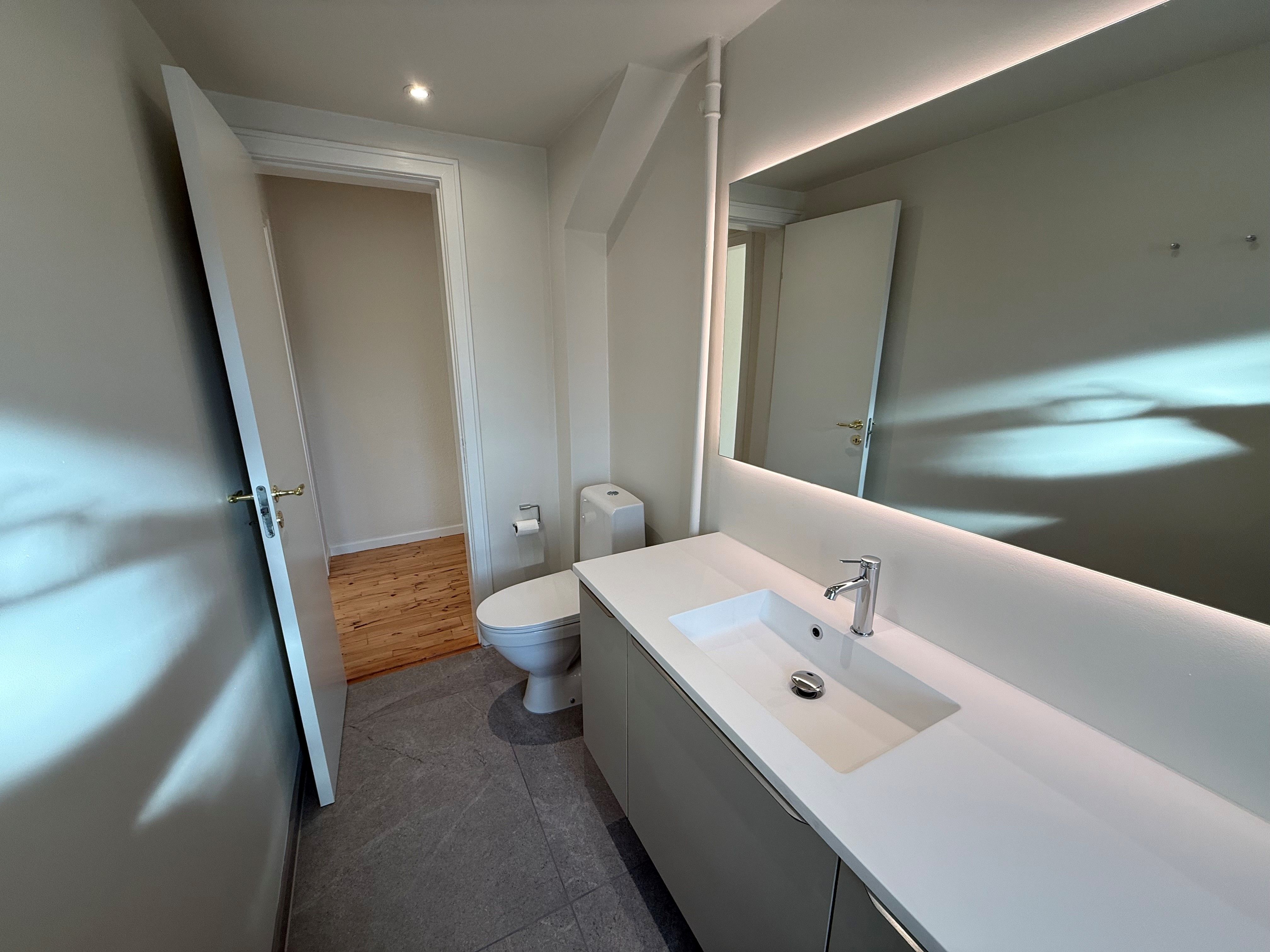 Hvis du leder efter det ultimative sted at slå rødder midt i Odense, så behøver du ikke lede længere. På en af byens absolut bedste adresser i centrum udlejer vi nu denne fantastiske lejlighed på 3. sal, hvor du får både fred fra gadens larm og et lysindfald, der er helt unikt. Dette er boligen for dig, der drømmer om en hverdag præget af luksus, moderne komfort og en placering, hvor alt det bedste fra byens caféer, shopping og kulturliv ligger lige for fødderne af dig. Lejligheden fremstår fuldstændig knivskarp og moderne med en finish, der sjældent ses. Det nyere køkken er en sand fornøjelse for enhver hjemmekok, da det er fuldt udstyret med alt i hårde hvidevarer, så du slipper for at tænke på opvask eller manglende køleplads. Det samme gør sig gældende for det lækre badeværelse, der med sine moderne materialer føles som din egen private oase. Da vi endnu ikke har haft mulighed for at snige os ind og tage friske billeder af netop denne lejlighed, er de viste billeder fra andre lejligheder i ejendommen. De er dog alle renoveret i samme lækre stil, så du får en præcis fornemmelse af den høje kvalitet, der venter dig. Som en ekstra bonus er der plads til, at din bedste firbenede ven også kan flytte med, da husdyr tillades efter nærmere aftale og en individuel vurdering. Dette er den perfekte base for den kvalitetsbevidste unge lejer eller det unge karrierepar, der vil bo centralt i en bolig, der er helt up-to-date her i 2026.
