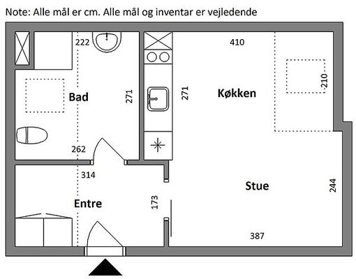 1 vær. lejlighed på 39 m²