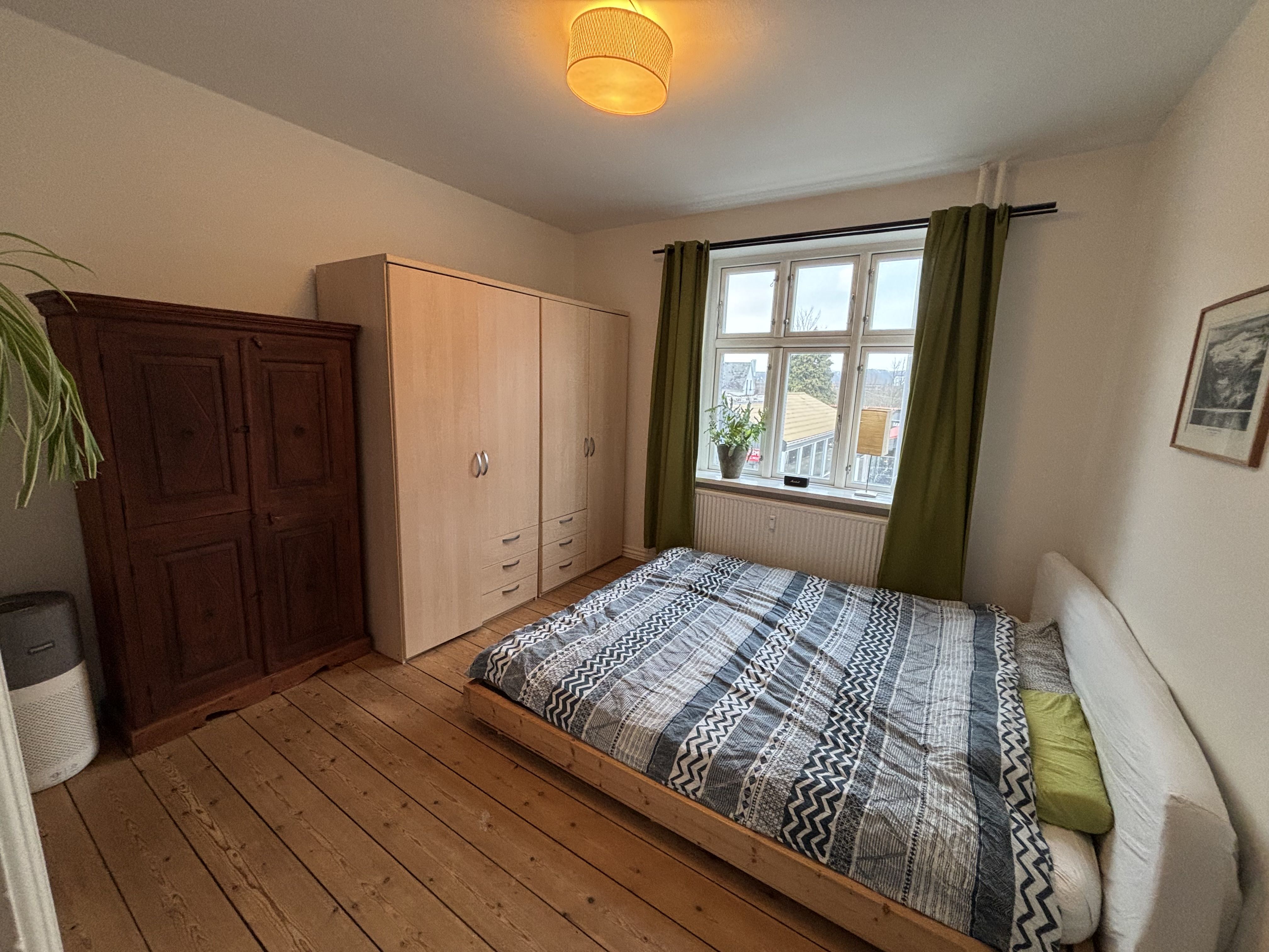 Rummelig 4-værelses lejlighed på 107 m² udlejes centralt på Hobrovej i Randers C. Lejligheden er ideel til familien eller parret, der ønsker en kombination af plads, lys og central beliggenhed. Køkkenet er pænt og velholdt med god skabsplads, opvaskemaskine og plads til en lille spiseplads. Fra køkkenet er der udgang til altan. Badeværelset er rummeligt med bruseniche, opbevaringsmuligheder og det er også her vaskemaskinen og tørretumbleren holder til. Lejligheden har to sammenhængende stuer med åben forbindelse, hvor den ene stue har et charmerende vinklet vinduesparti, som giver masser af lys og et godt udsyn. Der er et stort værelse og et lidt mindre værelse, begge med pæne trægulve og godt lysindfald. Alle værelser samt fordelergang har pæne trægulve, hvilket giver lejligheden et harmonisk udtryk. Tilladelse til husdyr kan i visse tilfælde gives – kontakt os for nærmere oplysninger. Lejemålet har ikke tilknyttet parkering. El afregnes direkte til forsyningsselskab. Lejligheden ligger centralt på Hobrovej i Randers C med kort gåafstand til indkøb, caféer, restauranter og offentlig transport. Grønne områder og stisystemer i nærheden giver gode muligheder for gå- og løbeture. Området kombinerer bylivets bekvemmeligheder med adgang til rolige og rekreative områder, hvilket giver en ideel balance mellem aktivitet og afslapning.