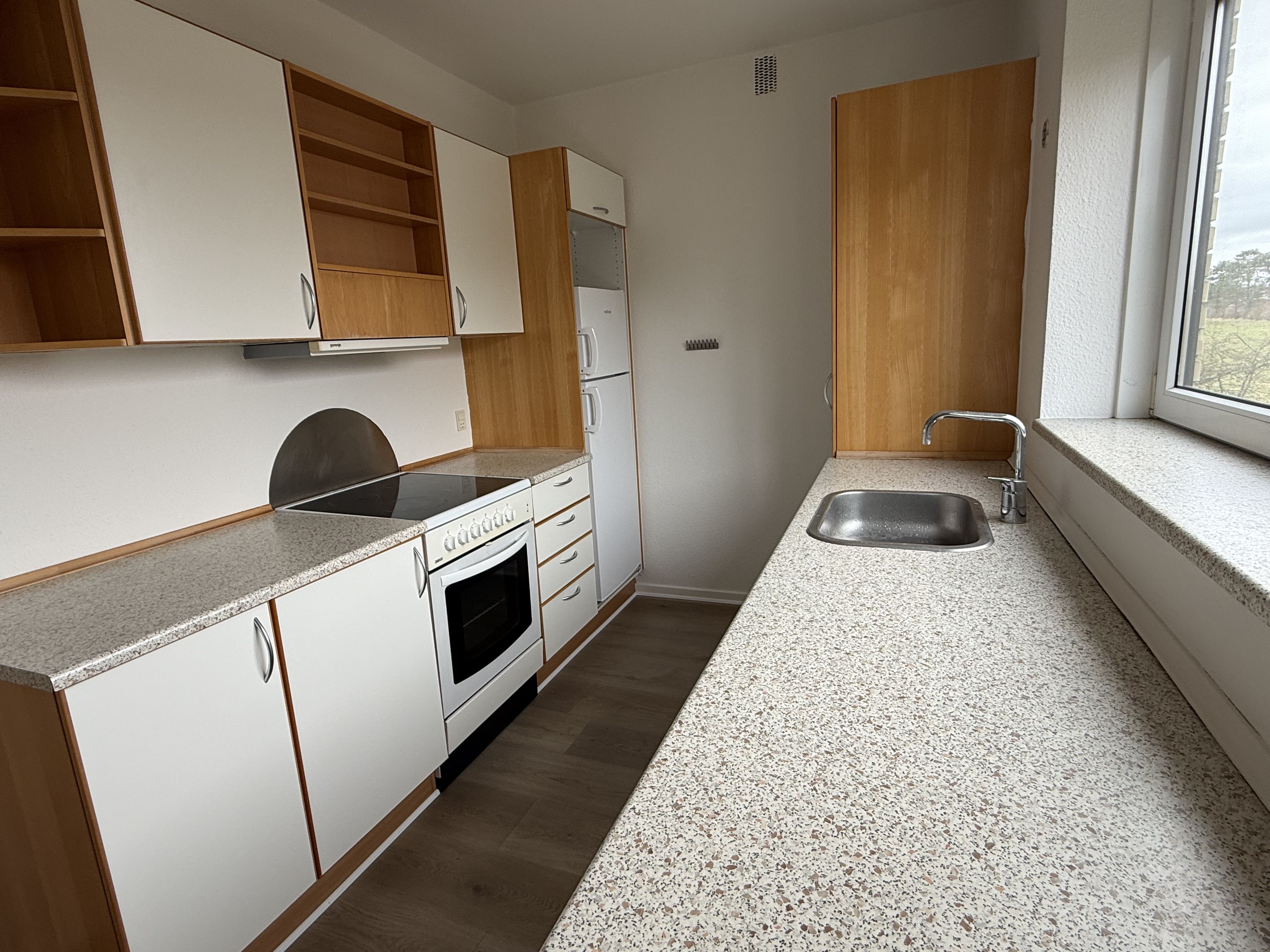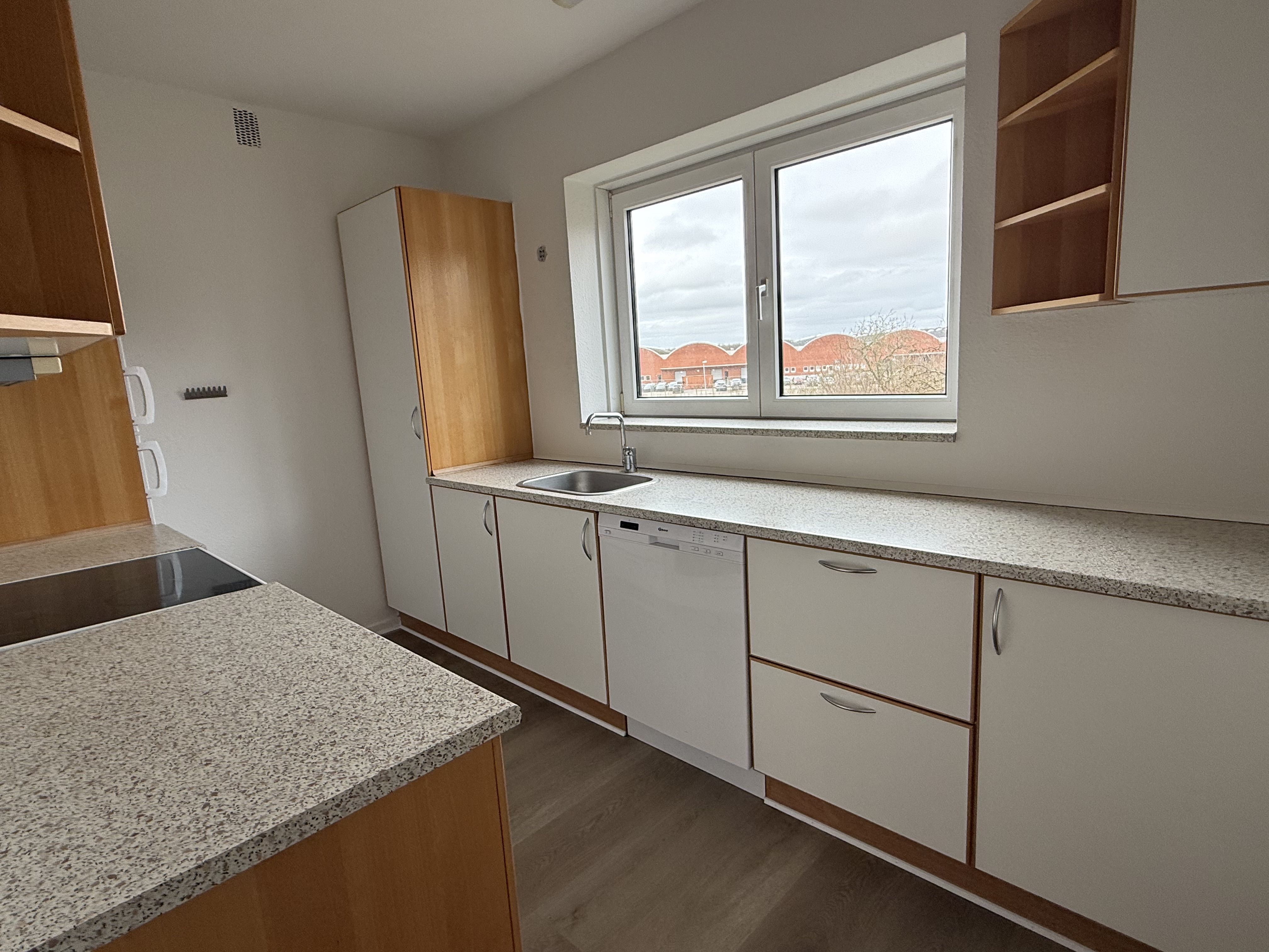 Køkken-alrum med komfur,emfang og opvaskemaskine