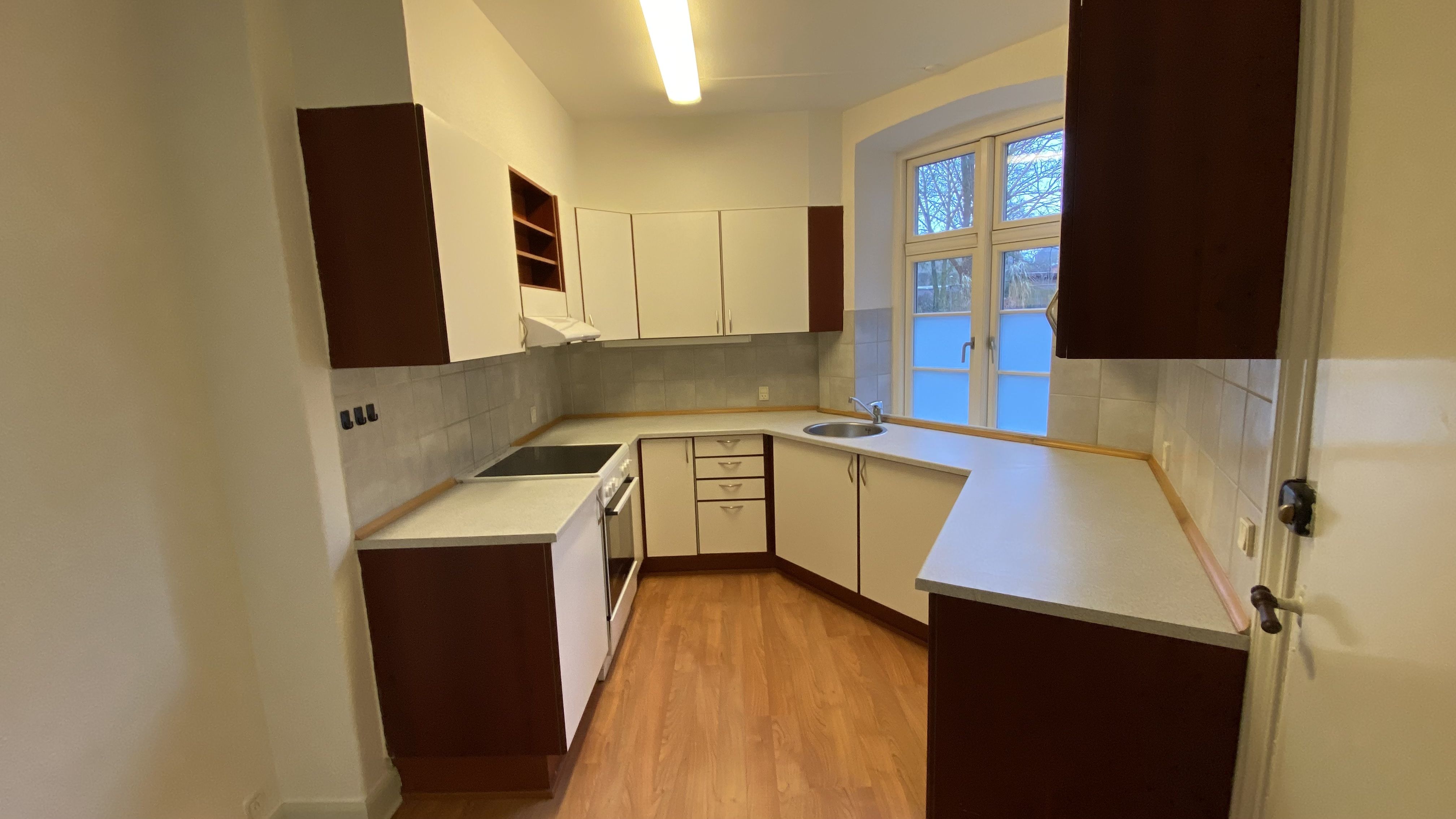 Beliggenhed Centralt beliggende og renoveret hjørneejendom. Beliggende tæt på banegården og byens centrum, med et stort udvalg af indkøbsmuligheder. Der er fælles gårdhave til ejendommen, der samtidig giver adgang til stort fælles gårdhavemiljø i området. Børneinstitutioner og skoler i gåafstand. Faciliteter Vaskefaciliteter henvises Øvrigt Dørtelefonanlæg. Altaner på de fleste lejemål. Afhøvlede massive trægulve og stuklofter.