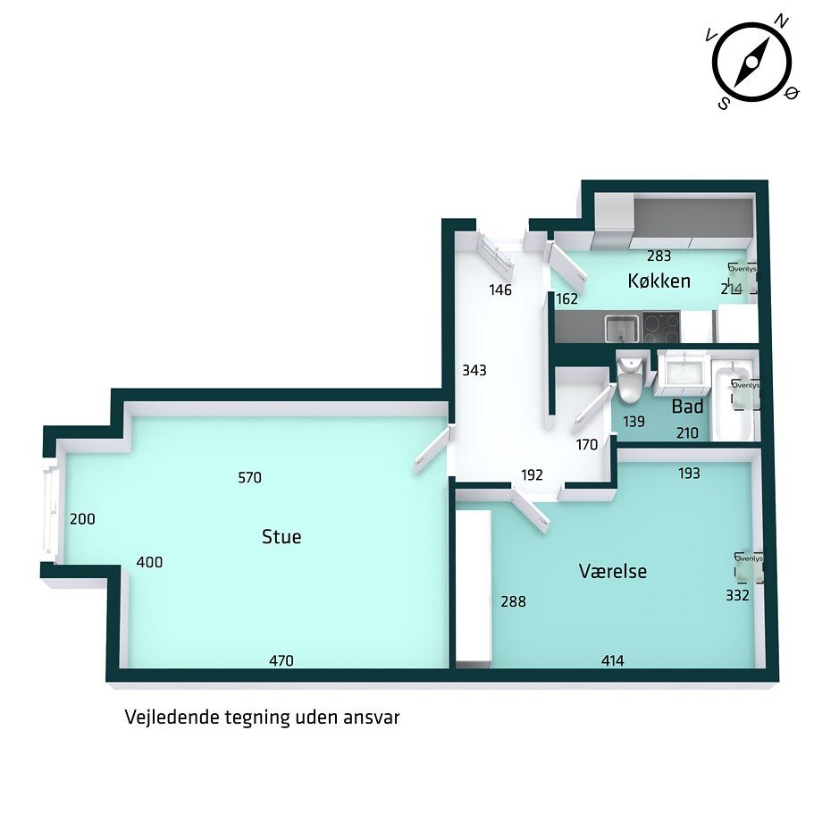 2 vær. lejlighed på 63 m²