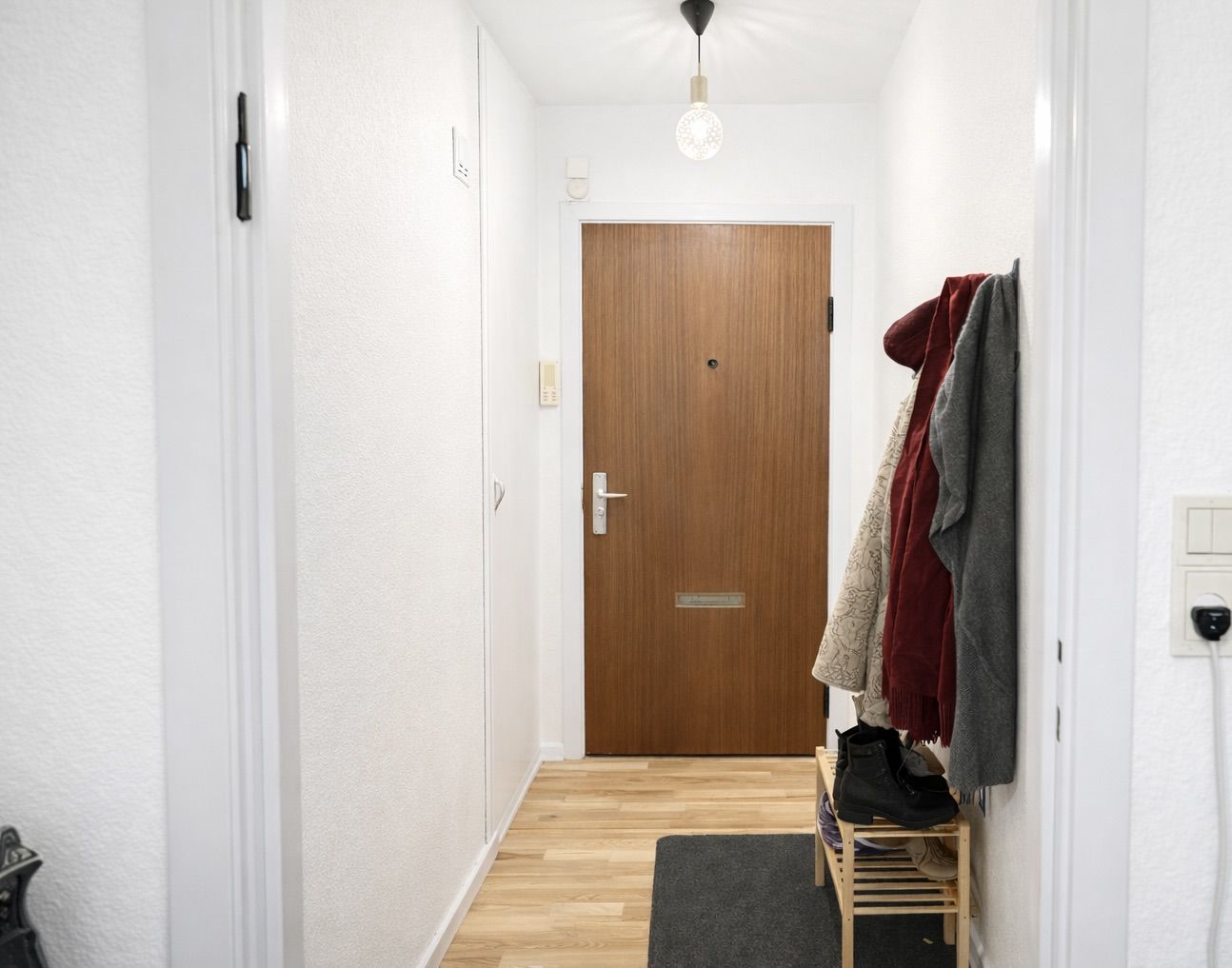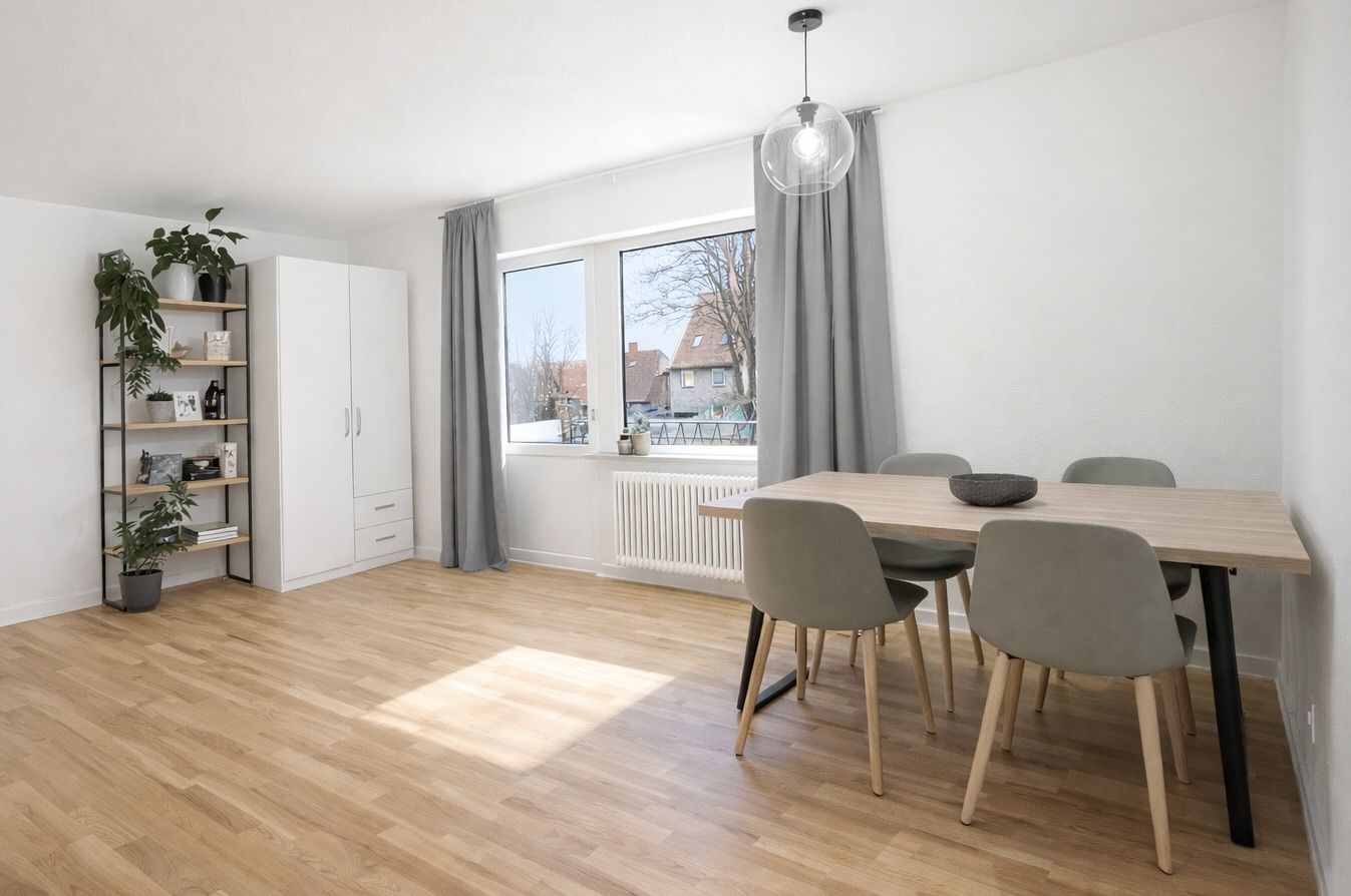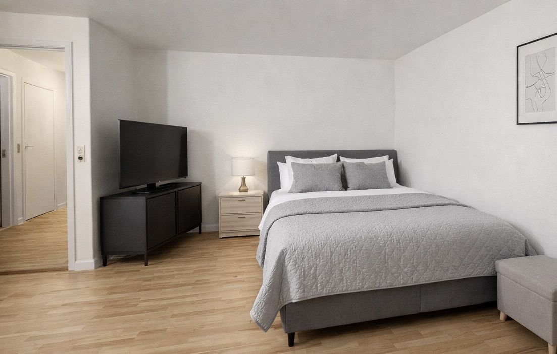 Velkommen til en lys og helt nyistandsat 1-værelses lejlighed på 42 m2 med en funktionel planløsning og et fint uderum. Her får du altan/terrasse med adgang både fra køkkenet via en smal udgang og fra stuen via en terrassedør – en praktisk detalje, der gør det nemt at trække frisk luft ind i hverdagen. Boligen egner sig godt til én person eller et par, der ønsker en nem og overskuelig base. Køkkenet fremstår moderne og velindrettet med hvide fronter, god bord- og skabsplads samt integrerede hårde hvidevarer, herunder opvaskemaskine, indbygningsovn og kogeplade. Et vindue giver naturligt lys, og den direkte udgang til altanen gør det oplagt at tage morgenkaffen med ud. Badeværelset er holdt i grå fliser med bruser, spejl og en funktionel håndvask – enkelt og let at holde pænt. Det store opholdsrum er indretningsvenligt med plads til både soveafsnit med udtrækssofa eller seng og mindre spisebord. Et generøst vinduesparti sikrer et behageligt lysindfald, og terrassedøren forbinder stuen med altanen, så inde- og udeliv glider let sammen i sommermånederne. Gennemgående lyse materialer og nye overflader danner en rolig og tidssvarende ramme. Bemærk, at billederne er lånt fra en lignende lejlighed i ejendommen; der kan forekomme mindre variationer i placering af elementer og detaljer. Planløsning og materialevalg svarer i store træk til den annoncerede bolig. Beliggenheden giver dig en bekvem hverdag med flere dagligvarebutikker, supermarkeder, og bager i nærområdet. Du har også adgang til fitnesscenter lige nedenfor bygningen, så det er let at få både indkøb og træning til at gå op i en travl hverdag.