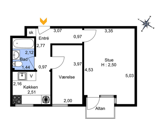2 vær. lejlighed på 51 m²
