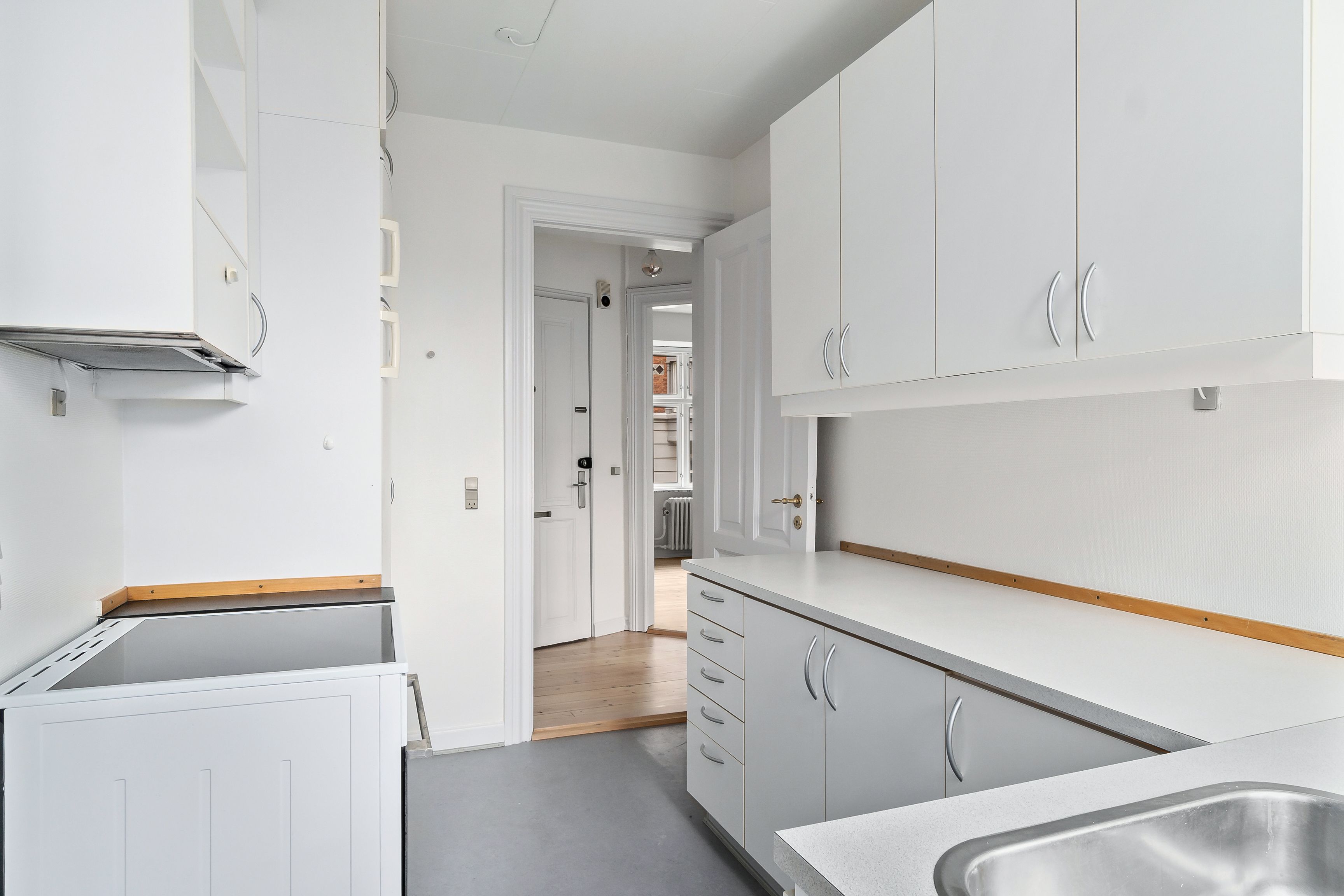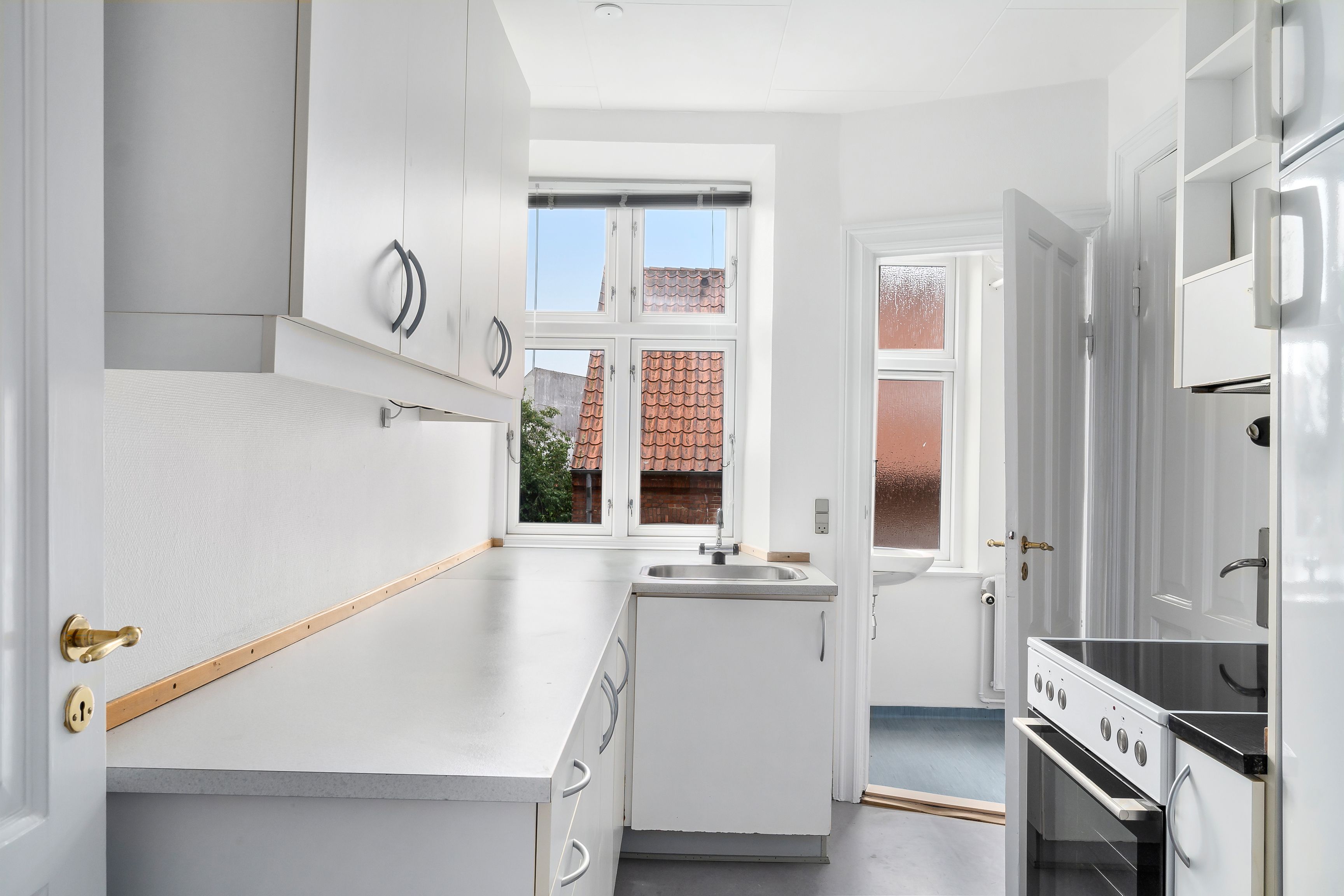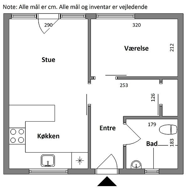 Lejligheden inde holder badeværelse med badekar og brus Køkken og stue dejligt lyst soveværelse med skabe Gang med indbygget skab Kom og se den