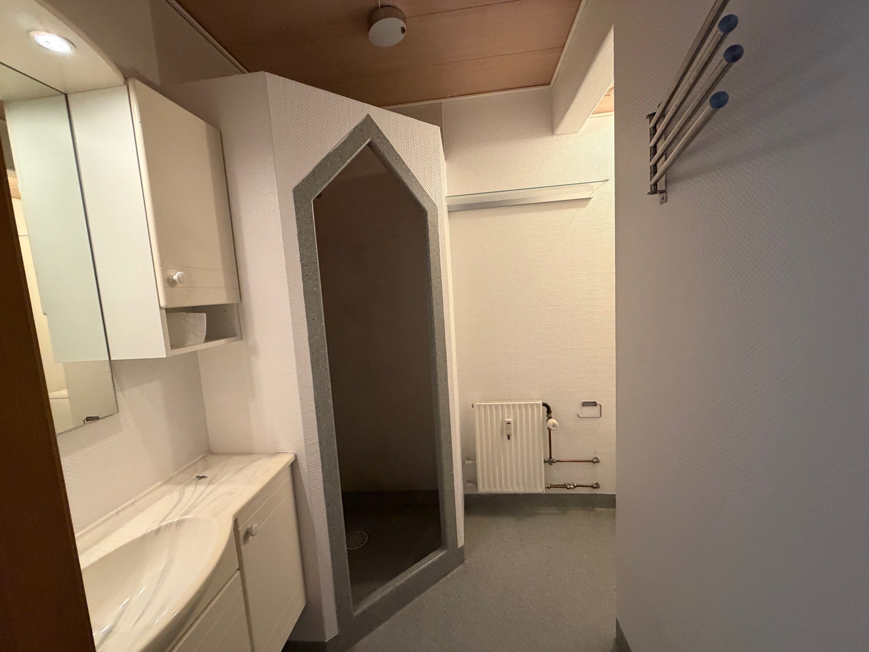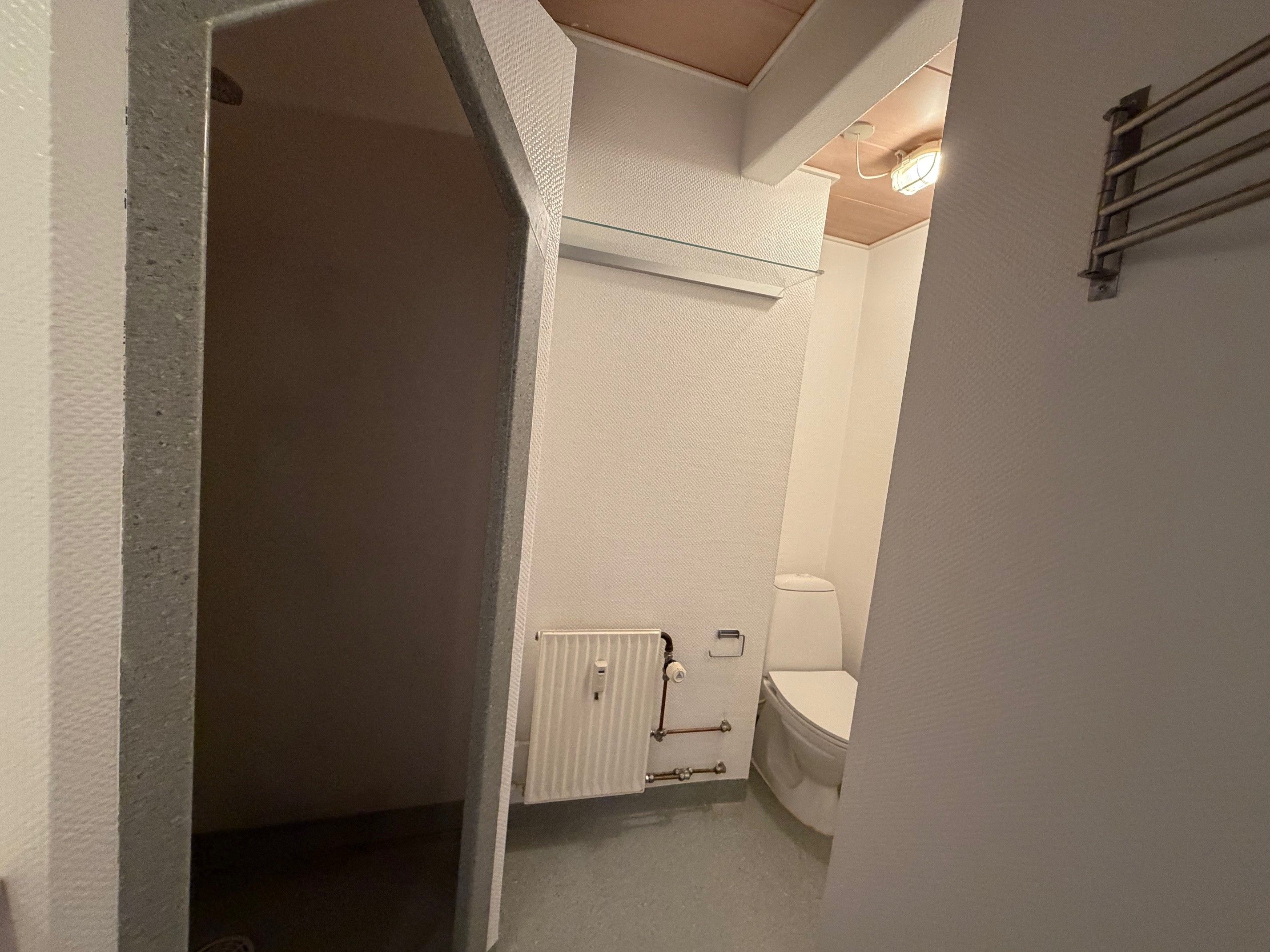 Soveværelset er lyst og har udgang til altan – perfekt til en kop kaffe i solen og et friskt pust i det daglige. Badeværelset er funktionelt med brus, fliser og god udnyttelse af kvadratmeterne.