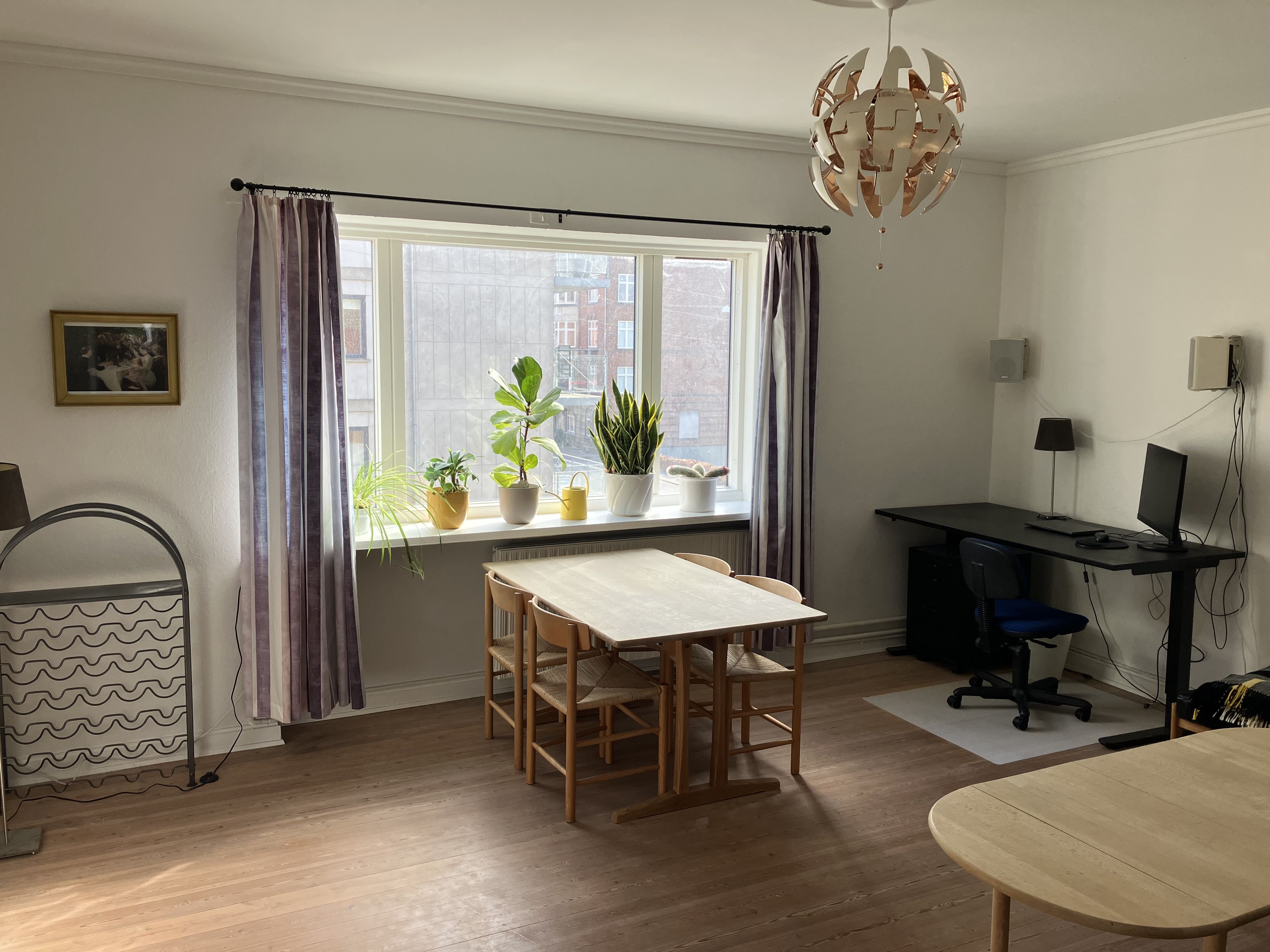 Stuen fremstår lys og indbydende med stort vinduesparti, trægulv og udgang til egen altan, som giver ekstra luft og lys i hverdagen. Værelset er ligeledes af god størrelse med trægulv og gode indretningsmuligheder.