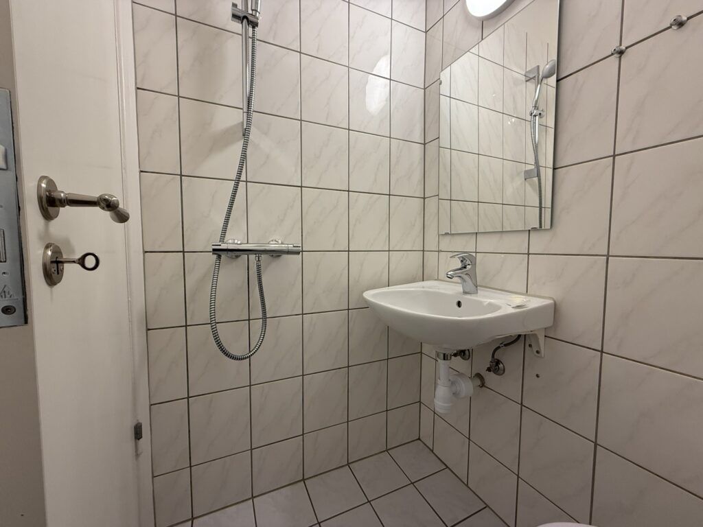 Boligen består af et køkken i pæn og velholdt stand samt et badeværelse i velholdt stil med en kompakt og funktionel bruseløsning. Den lyse stue og det rummelige værelse har flotte trægulve, som skaber en behagelig og indbydende atmosfære. Fra værelset er der direkte udgang til altan, hvor udelivet kan nydes.