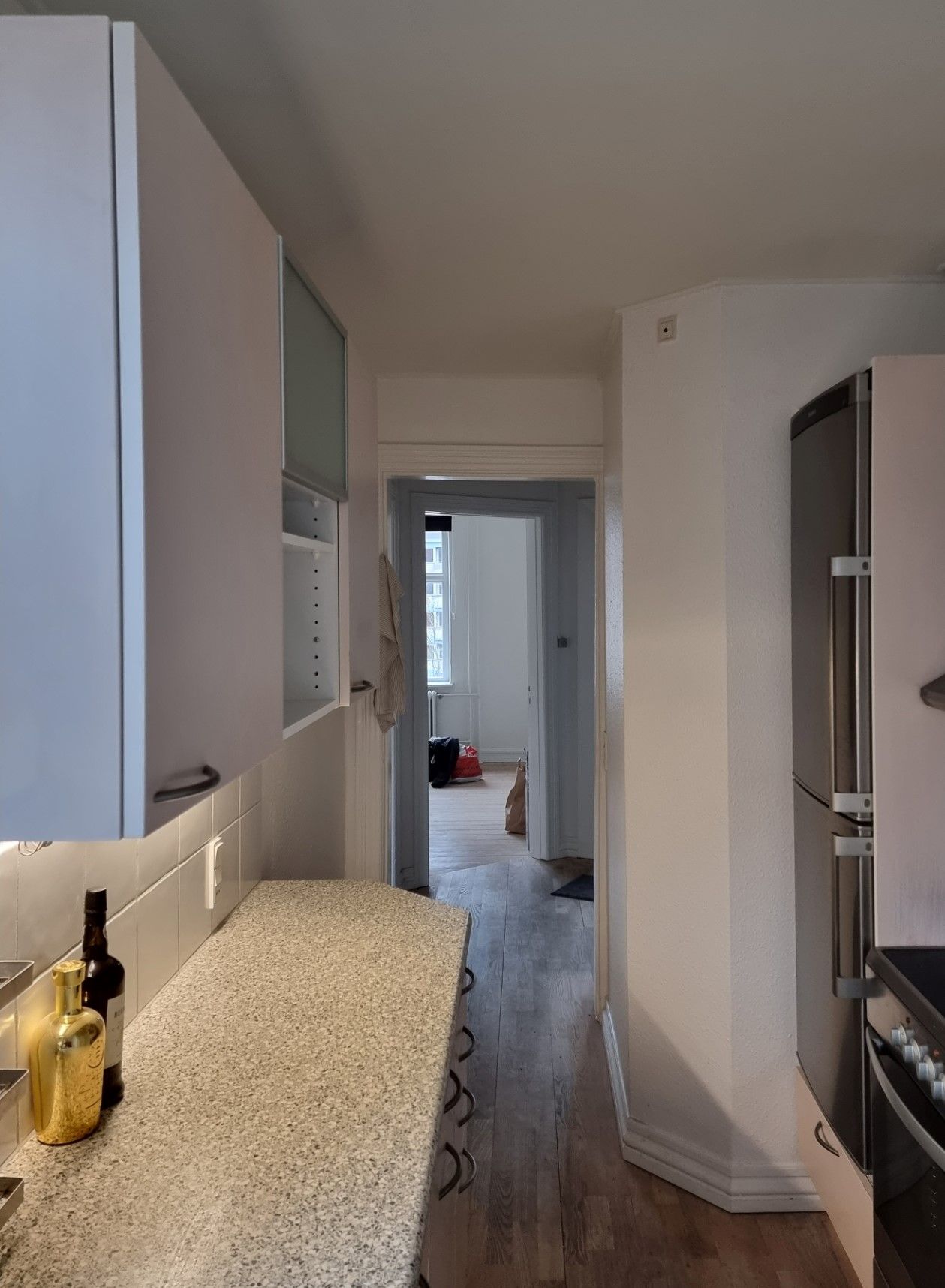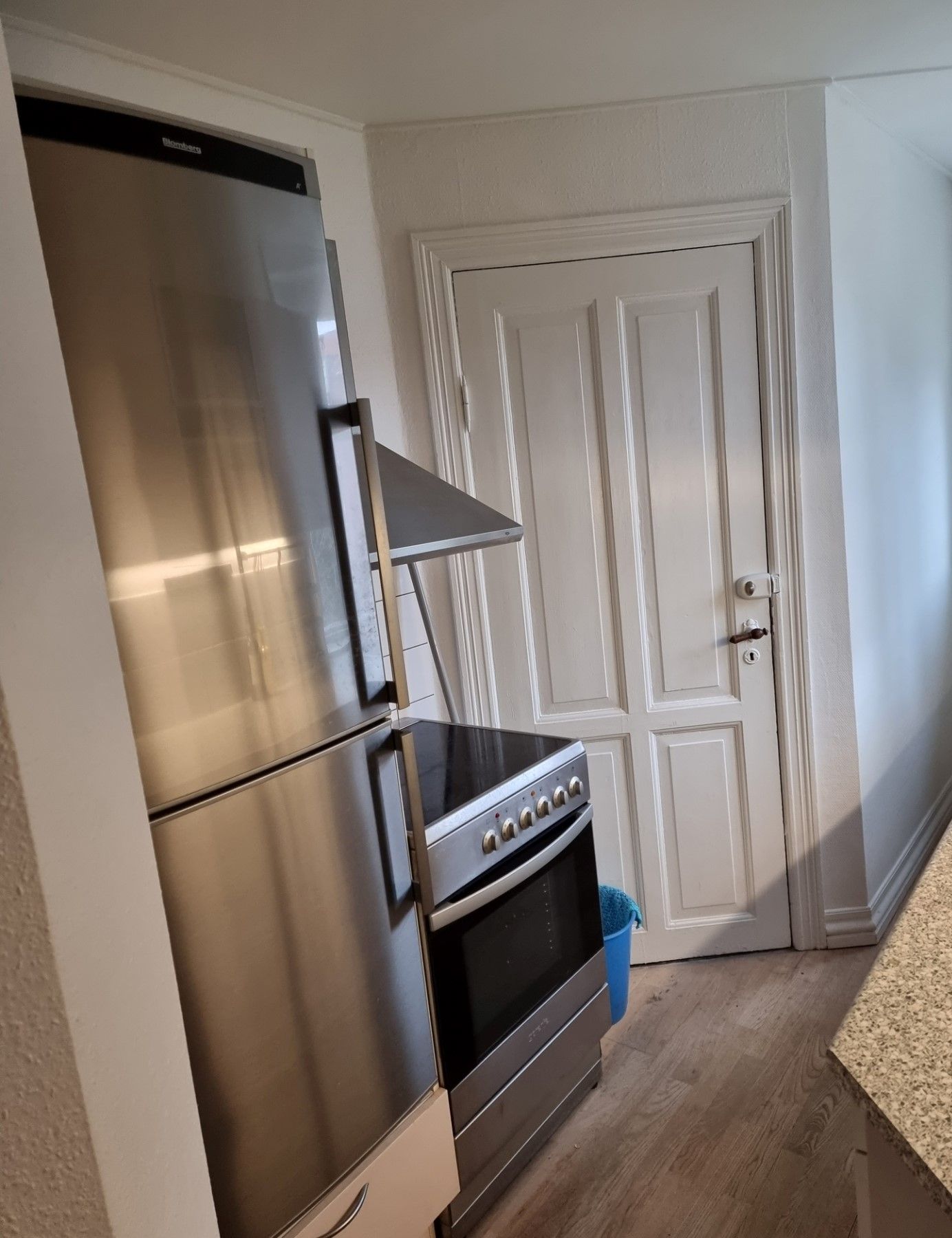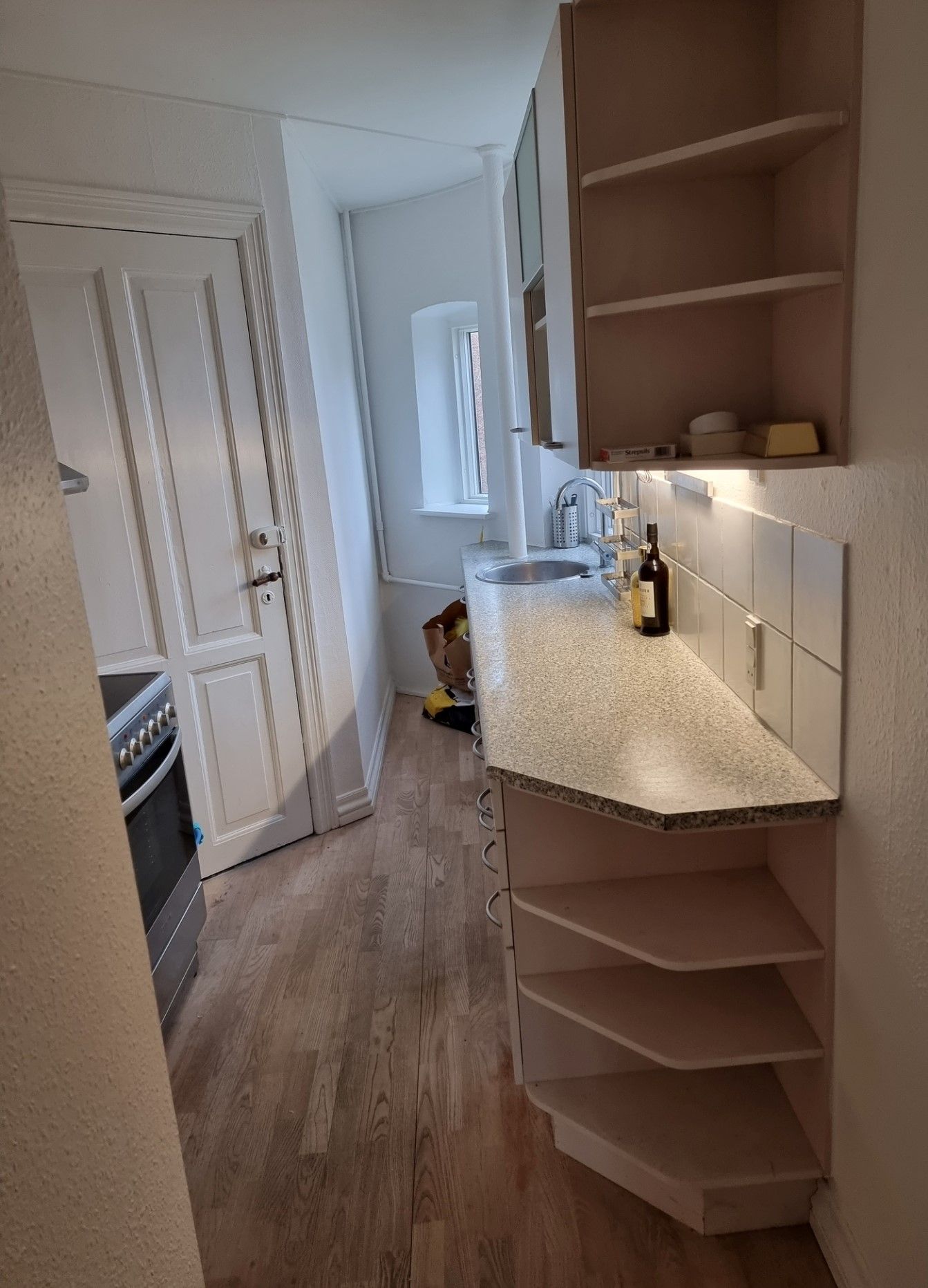 Boligen byder på et ældre, men velholdt køkken med god skabsplads. Vaskemaskine medfølger og er installeret i lejligheden, hvilket gør hverdagen både nem og praktisk.