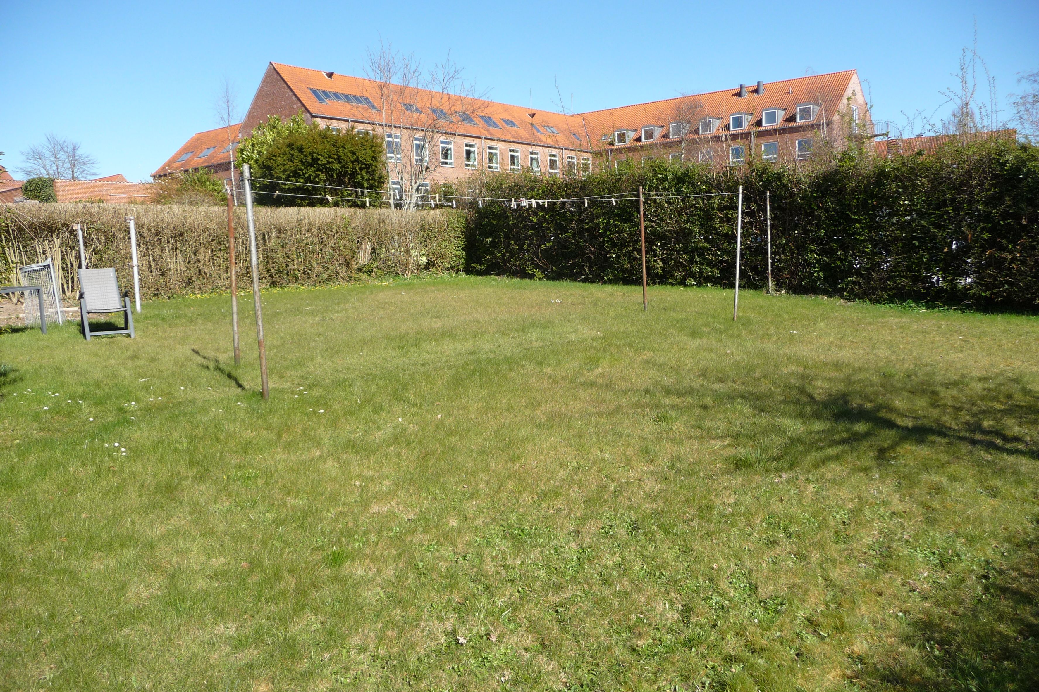 Der er tilhørende stor fælles have, med ydermere fælles terrasser, og fri parkeringsmuligheder på hele Kongevej.