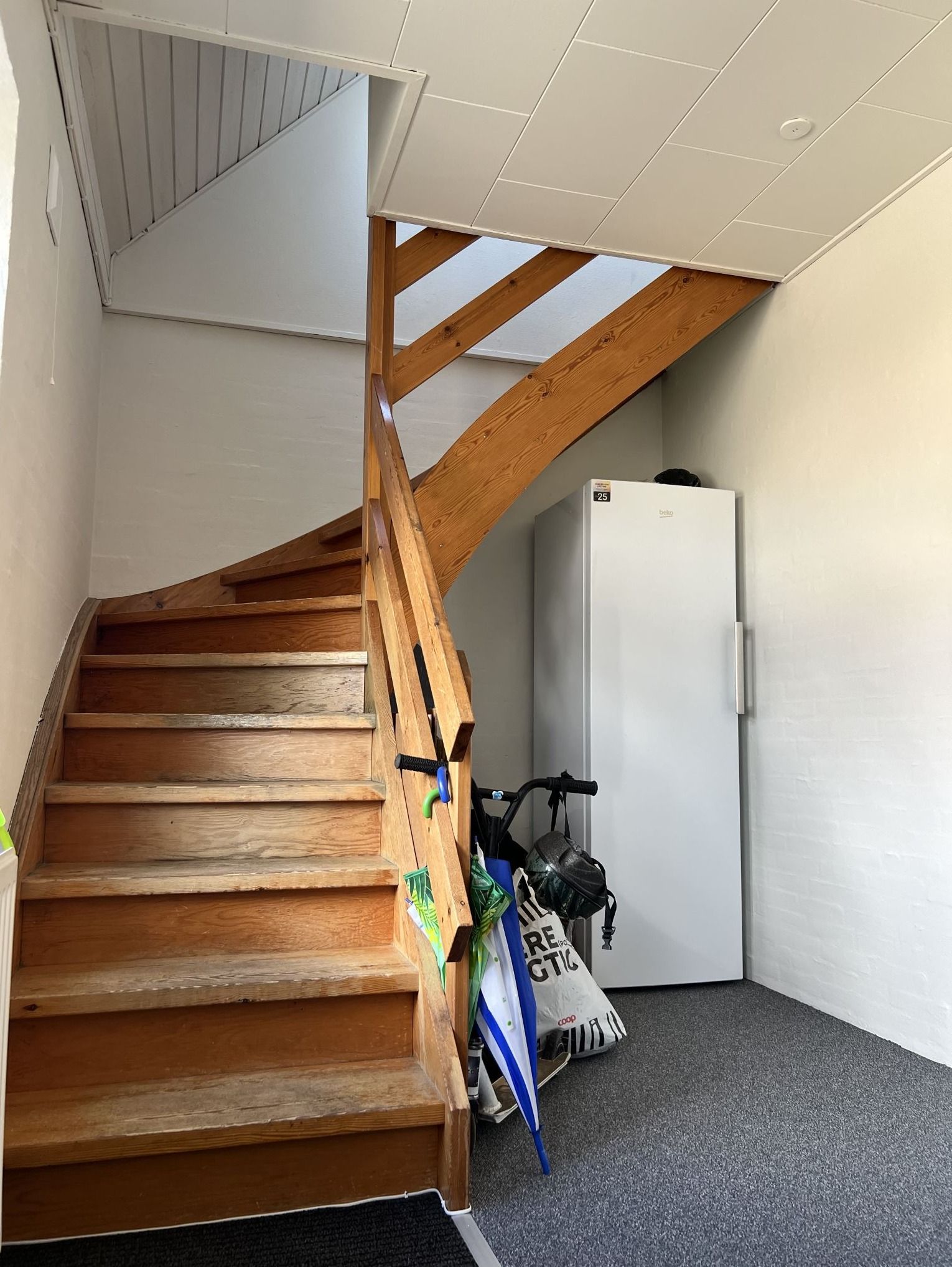 Velholdt lejlighed med stue, køkken, 3 værelser ud over stuen, pulterrum, stor gang og bad. Derudover en stor terrasse på 1 sal. Samt gårdhave.