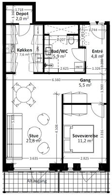 2 værelses lejlighed på 63 m²