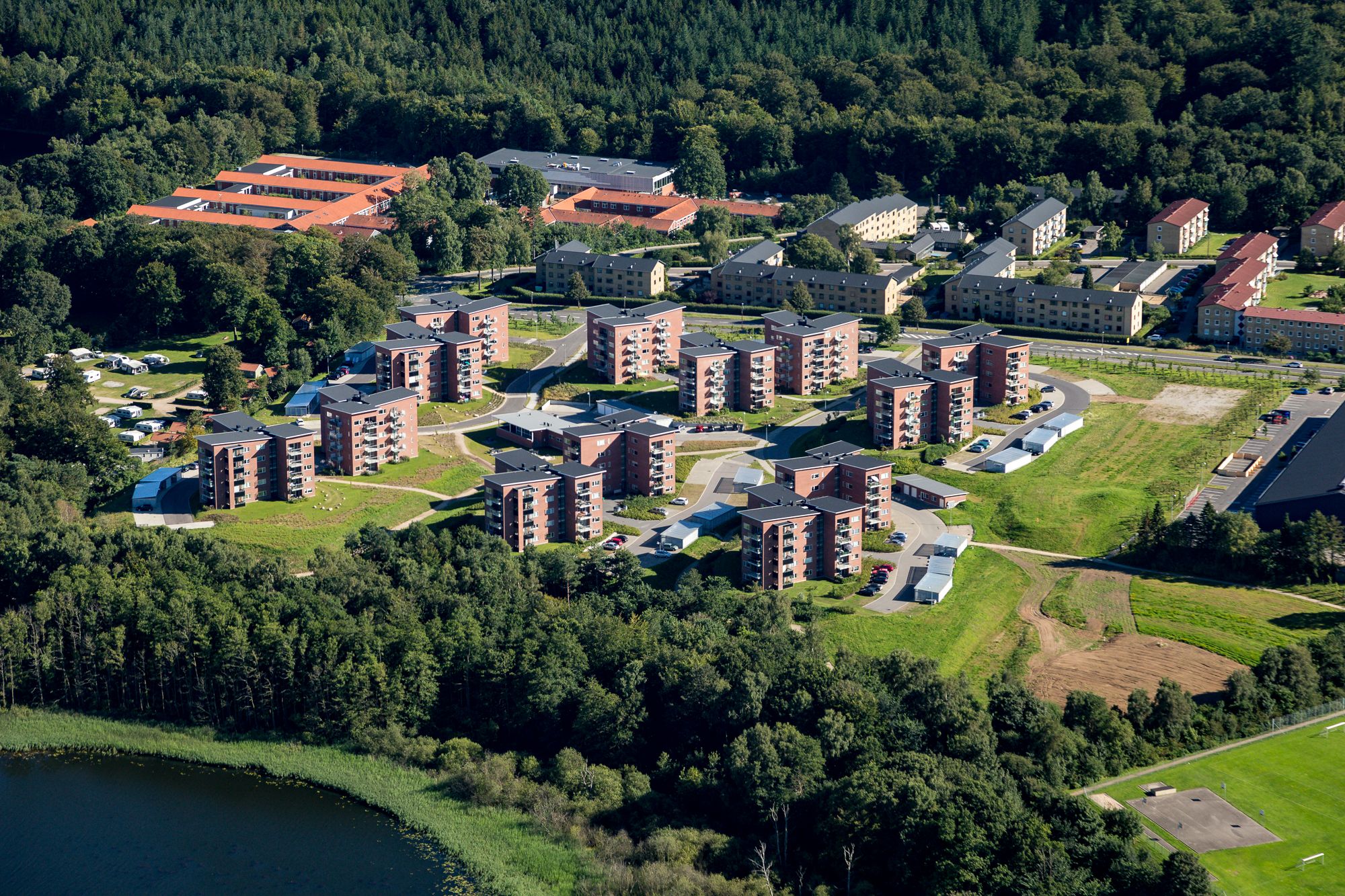 Dejlig lejlighed tæt på sø og skov, midtbyen med indkøb tog og bus, ca. 1 km fra motorvejen.
