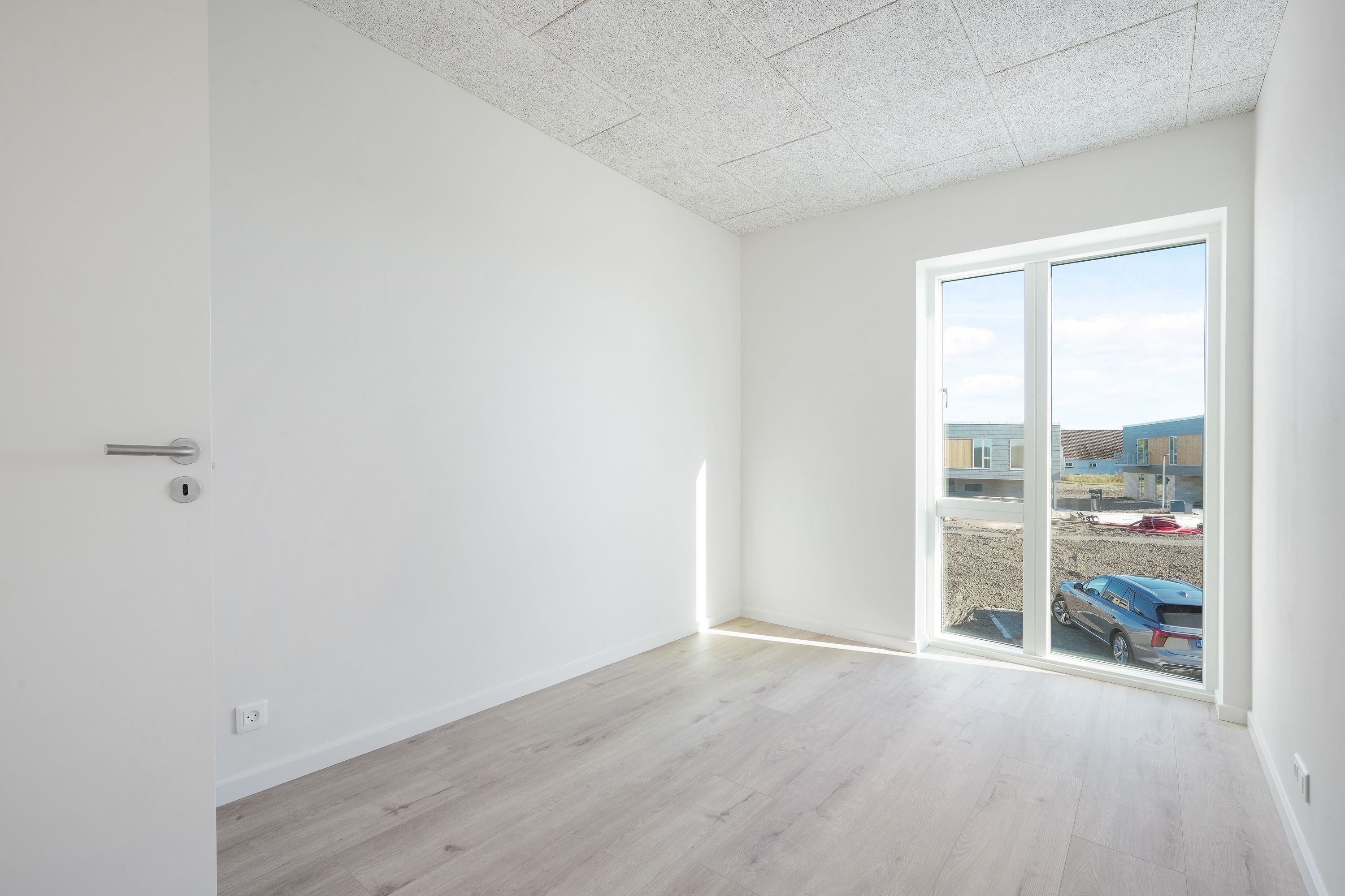 Der er 110 parkeringspladser fordelt på fire store parkeringspladser, hvoraf flere er el-ladestandere. Der er også få overdækkede parkeringspladser lige under boligerne.
