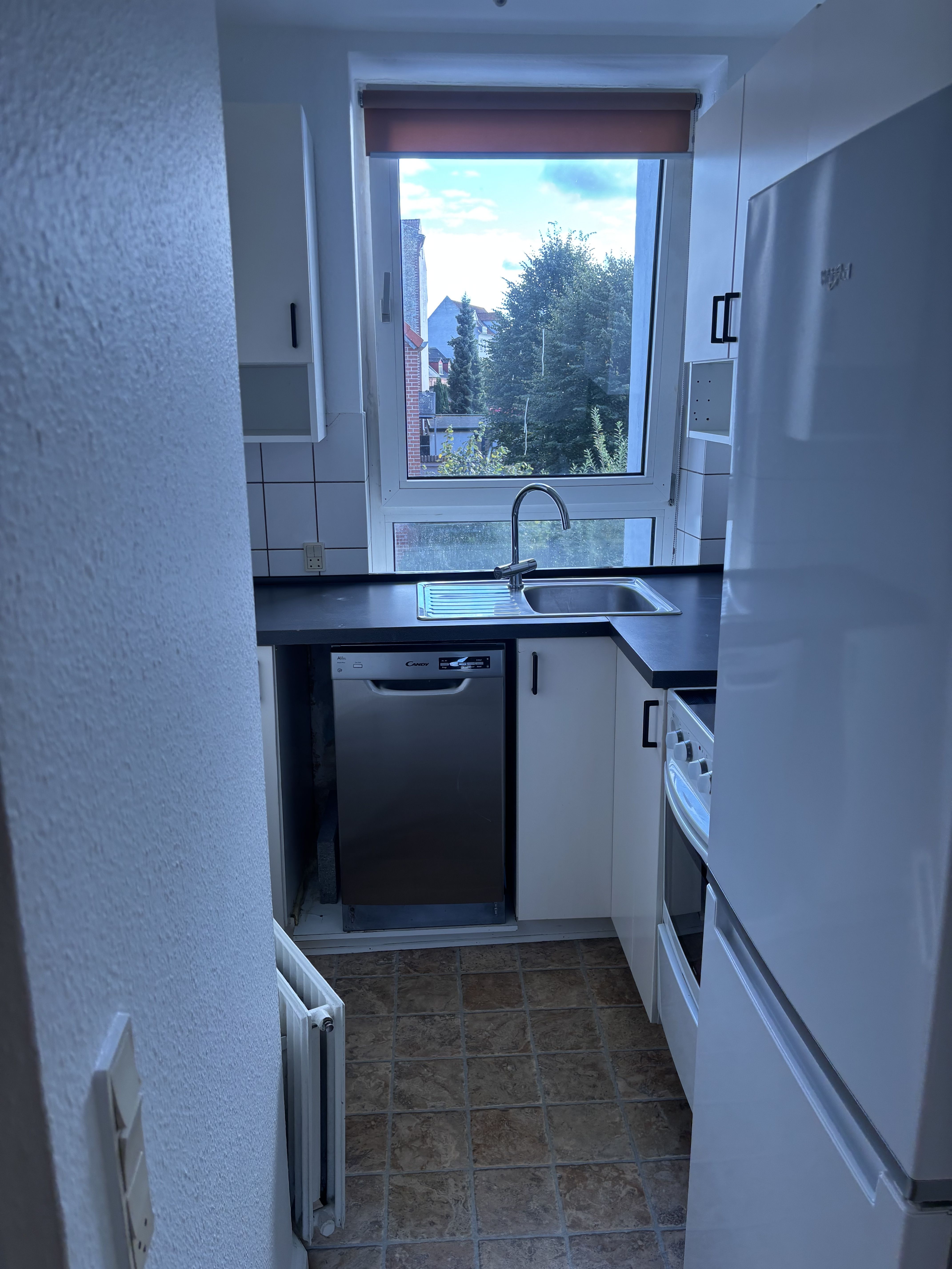 På Løvegade, midt i Slagelse, udlejes en lys og velindrettet lejlighed på 54 m² beliggende på 1. sal. Lejligheden ligger kun 2 minutters gang fra Professionshøjskolen Absalon og er derfor oplagt til studerende eller en/et enlig/par der ønsker en central og praktisk beliggenhed. Lejligheden indeholder et soveværelse samt et stort og åbent køkken-alrum med god plads til både spise- og opholdsafdeling. Derudover er der badeværelse og en funktionel planløsning uden spildplads. Beliggenheden er ideel med kort afstand til indkøb, offentlig transport, caféer og byliv – alt det daglige kan klares til fods