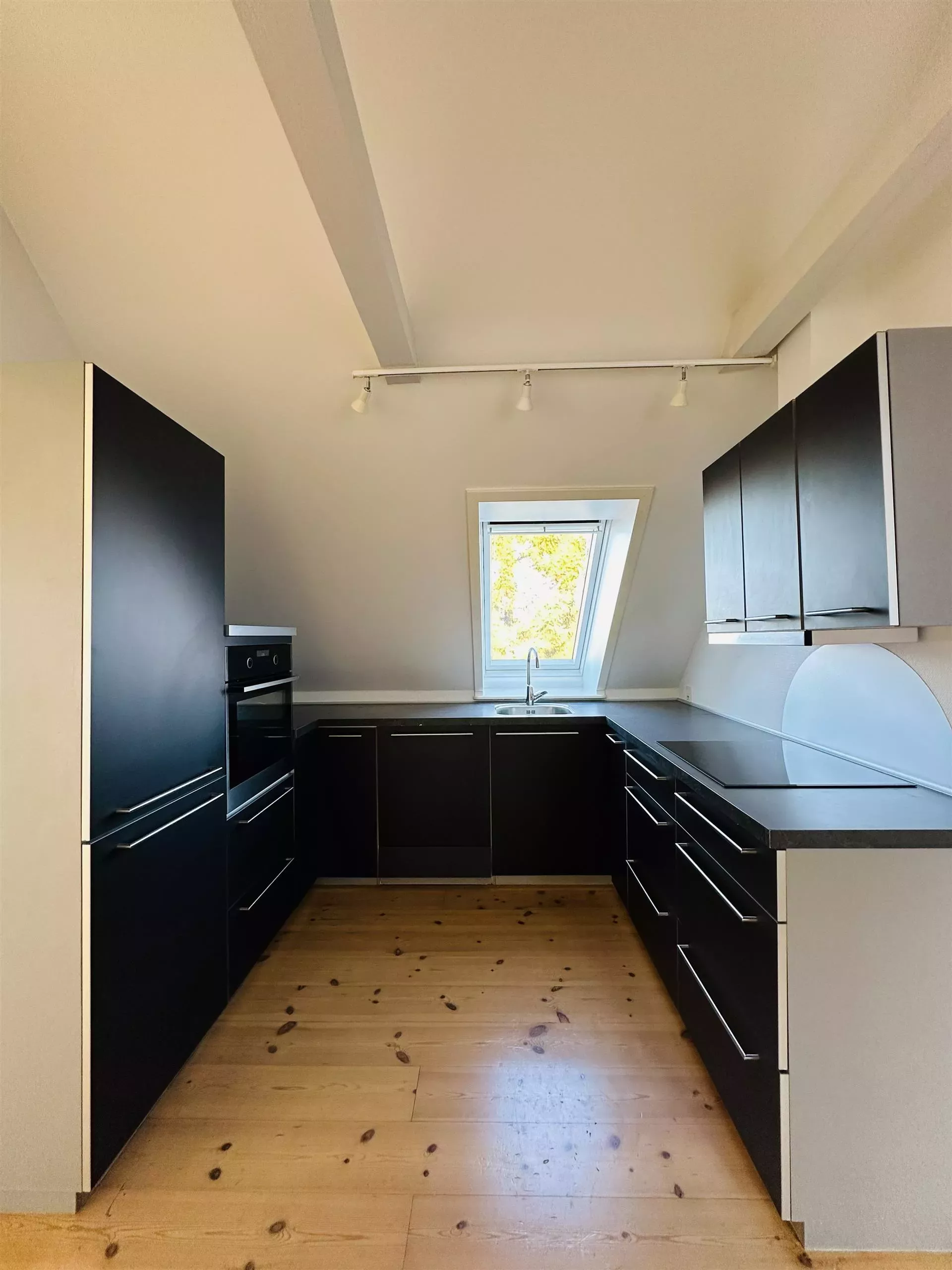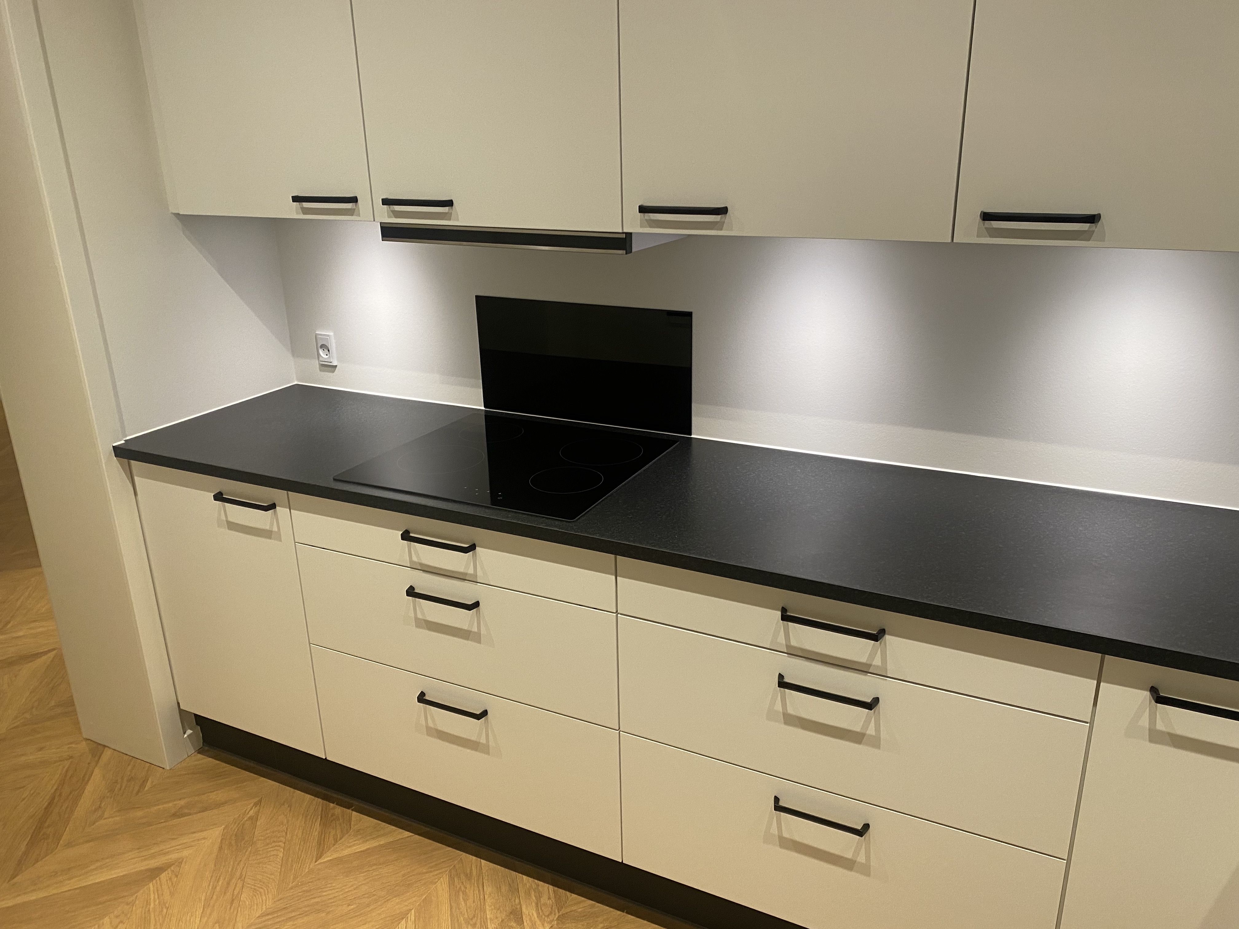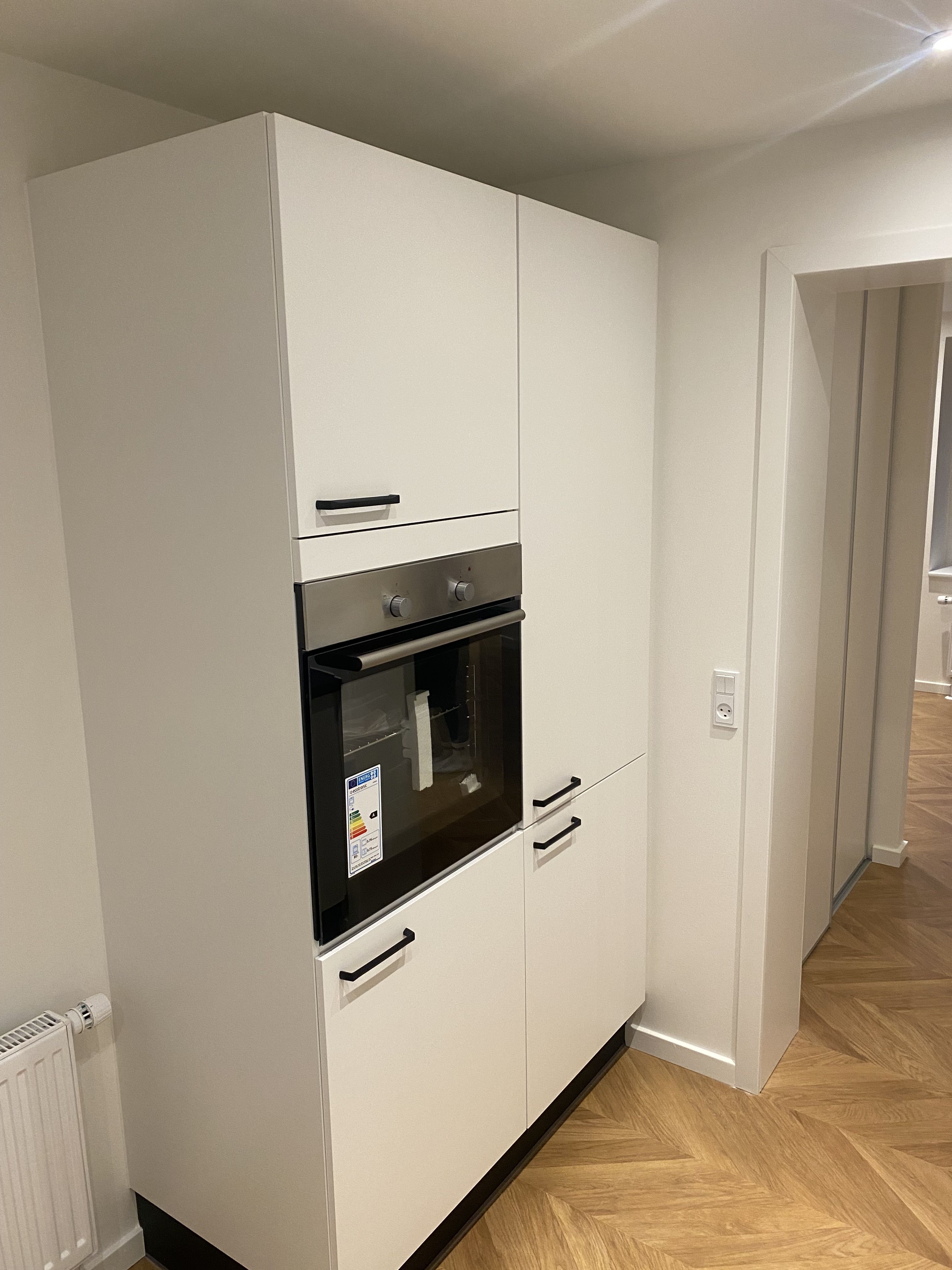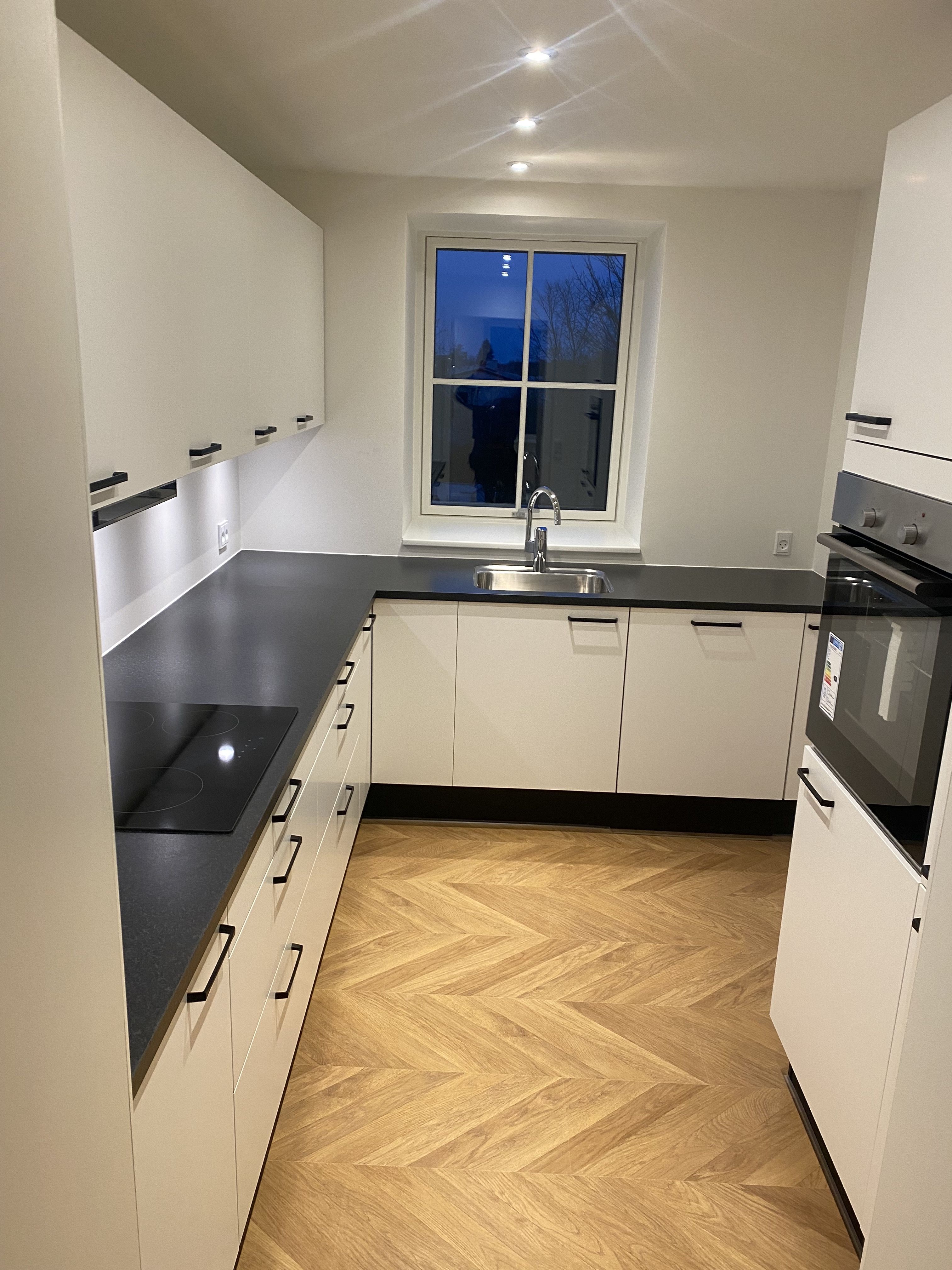 Nyistandsat lejlighed, køkkenalrum med hårde hvidevarer