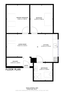 3 vær. lejlighed på 85 m²